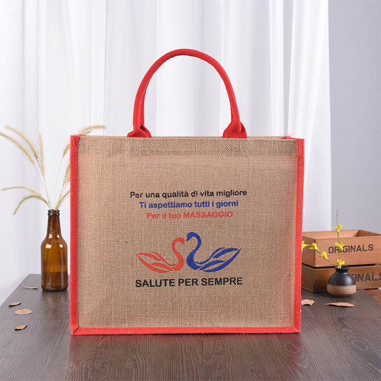 防水覆膜麻布袋定 制 亚麻广告礼品袋印LOGO手提购物袋50个起批发