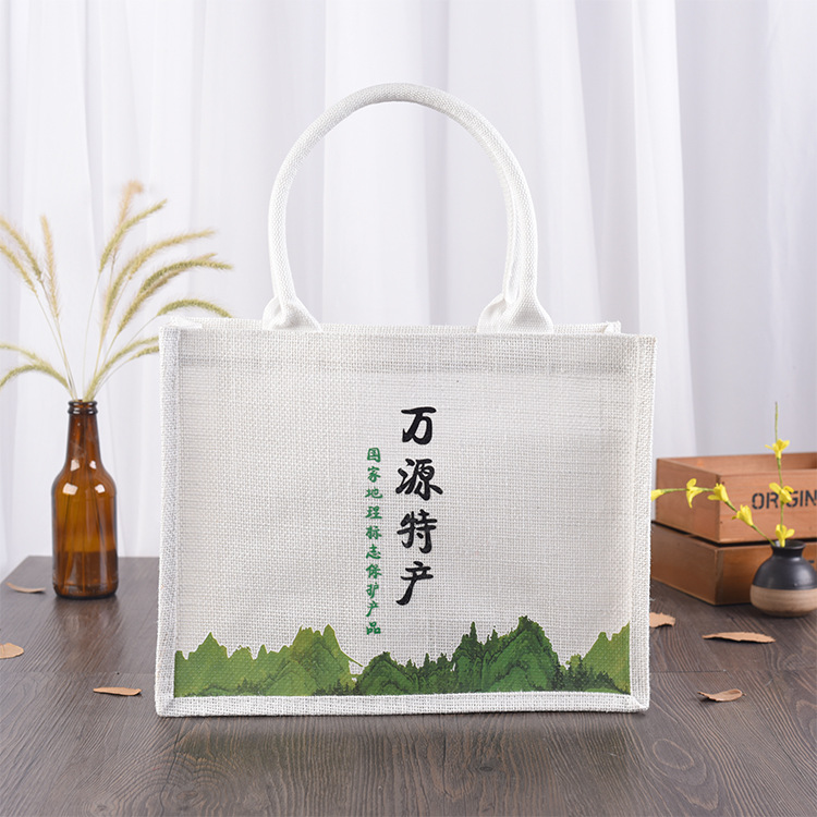 供应小清新礼品袋地方特产麻布袋印刷有底有侧亚麻手提袋可印logo