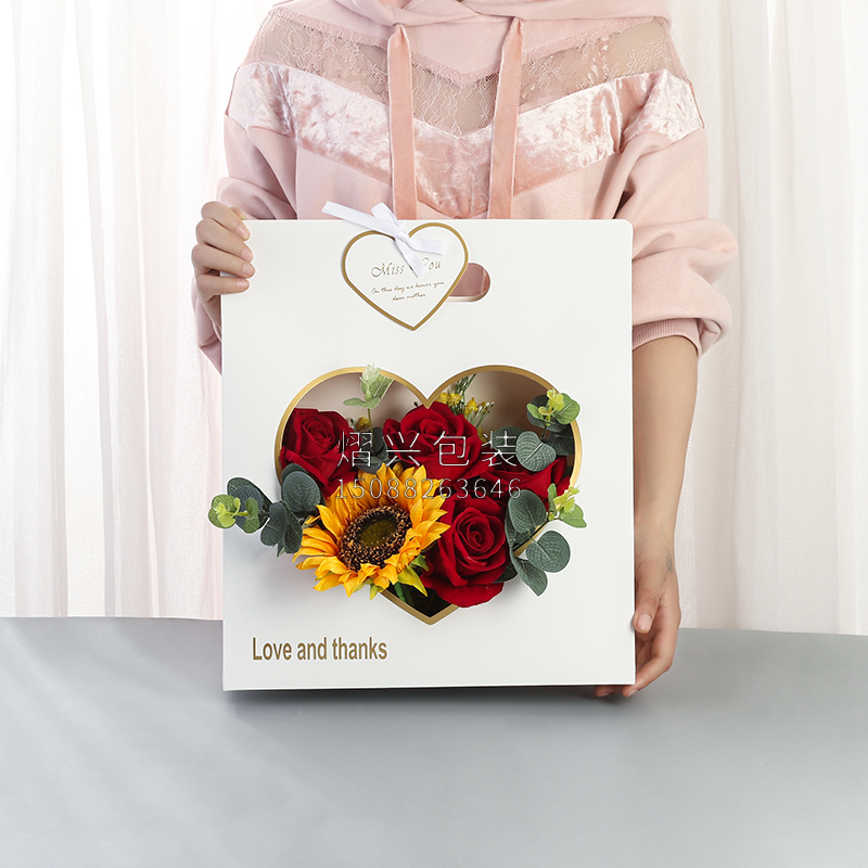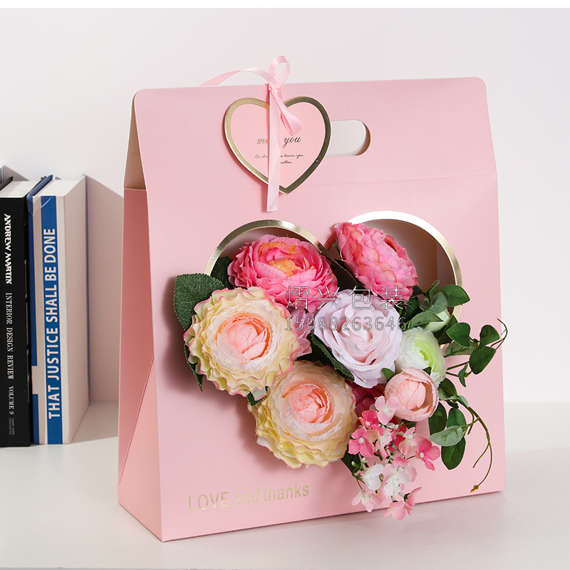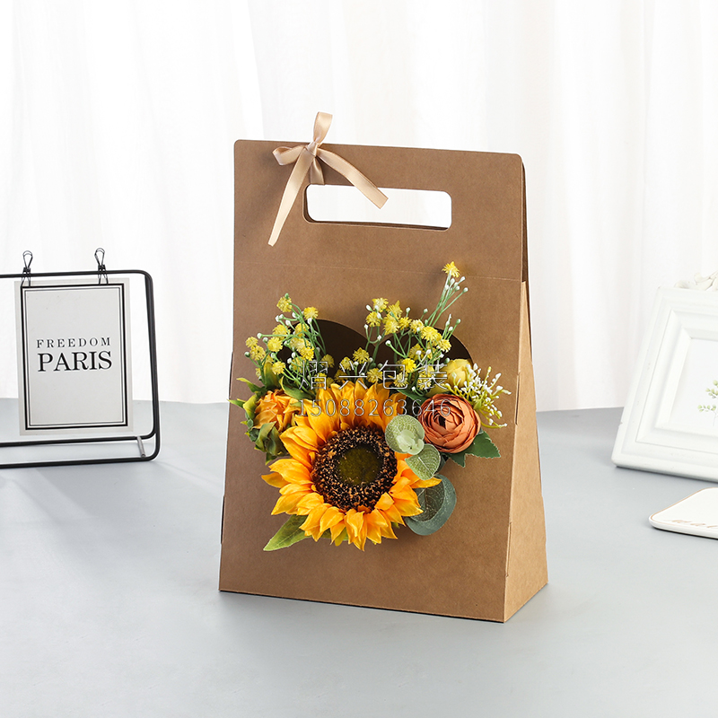 插花牛皮纸折叠手提花盒防水鲜花包装盒韩式随手拎花篮鲜花手提袋