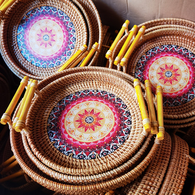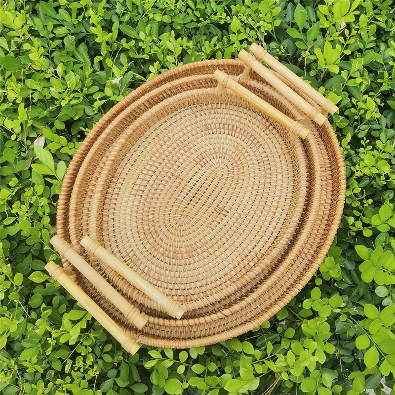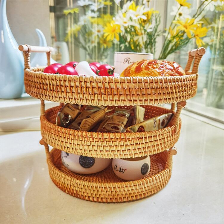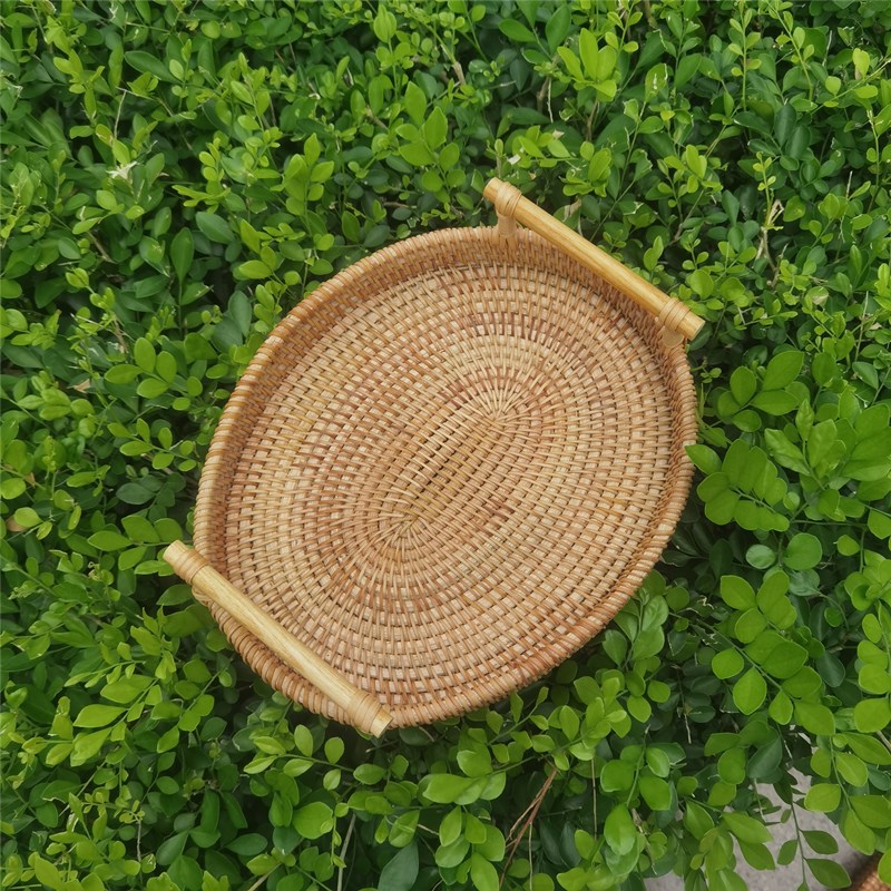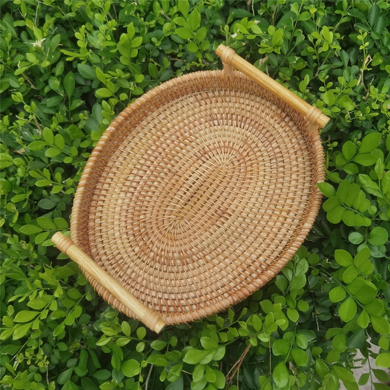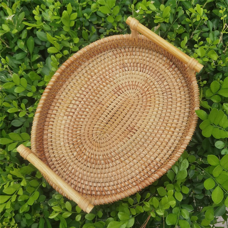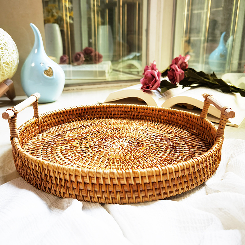 越南藤编收纳筐手提面包点心盘水果筐零食糖果面包篮馒头收纳托盘