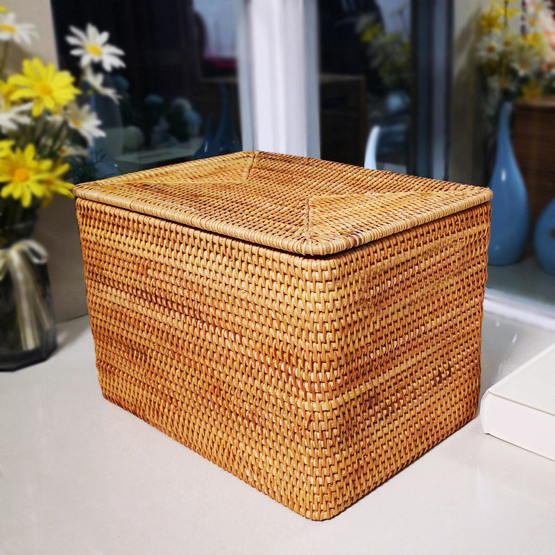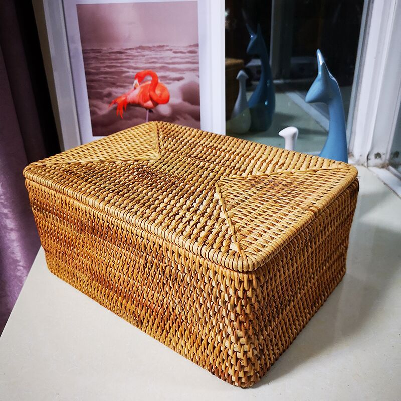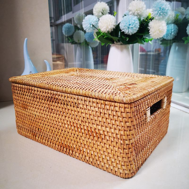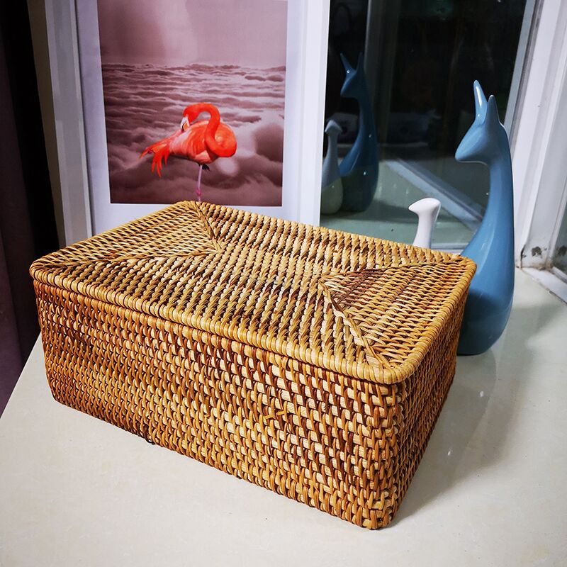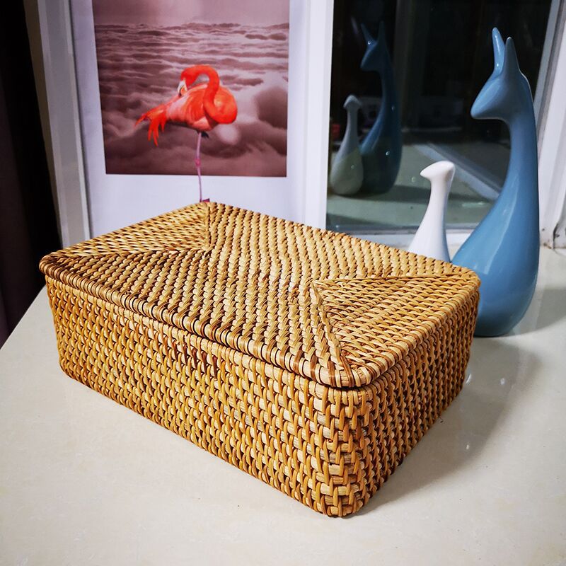 越南藤编收纳箱证件杂物桌面茶几方形带盖储物整理收纳筐厂家直销