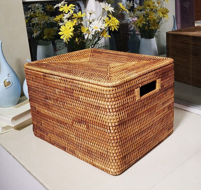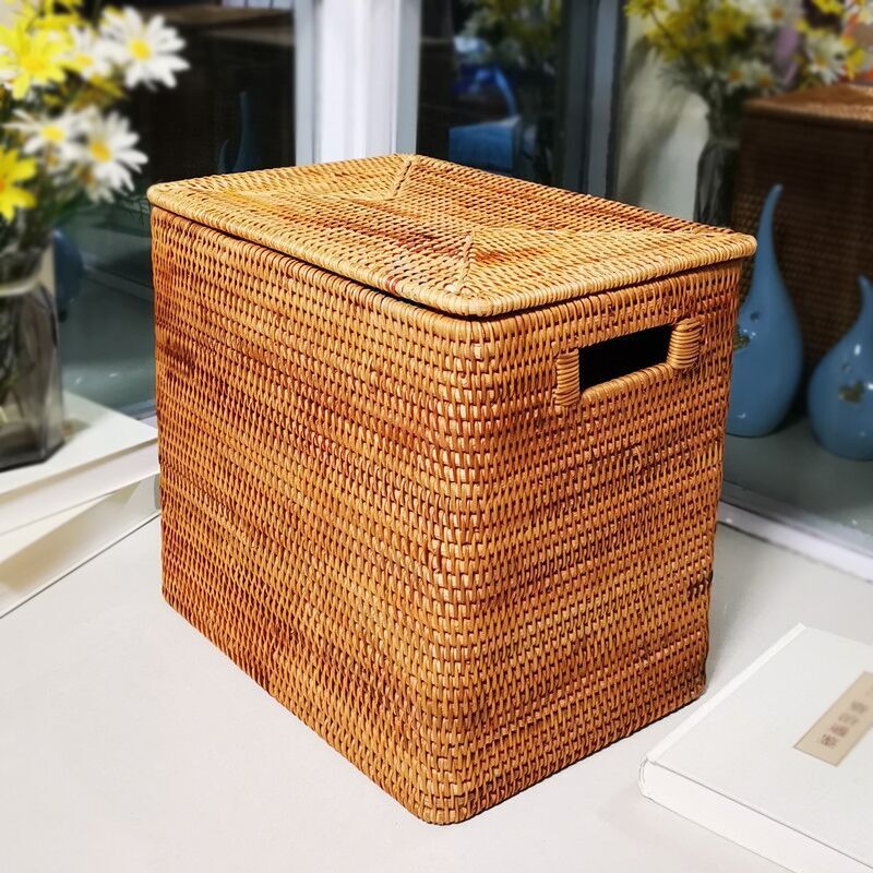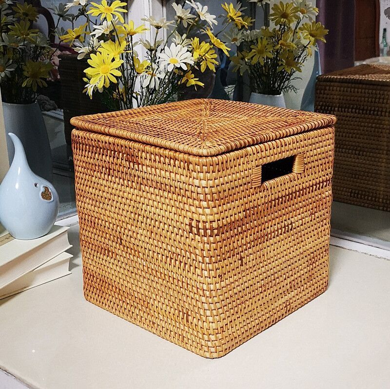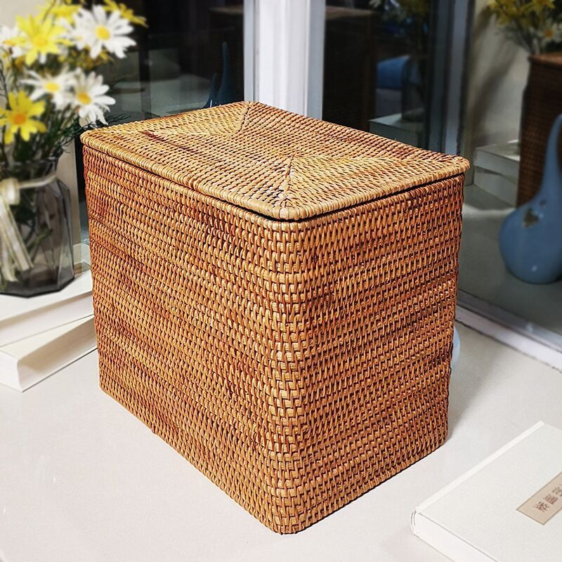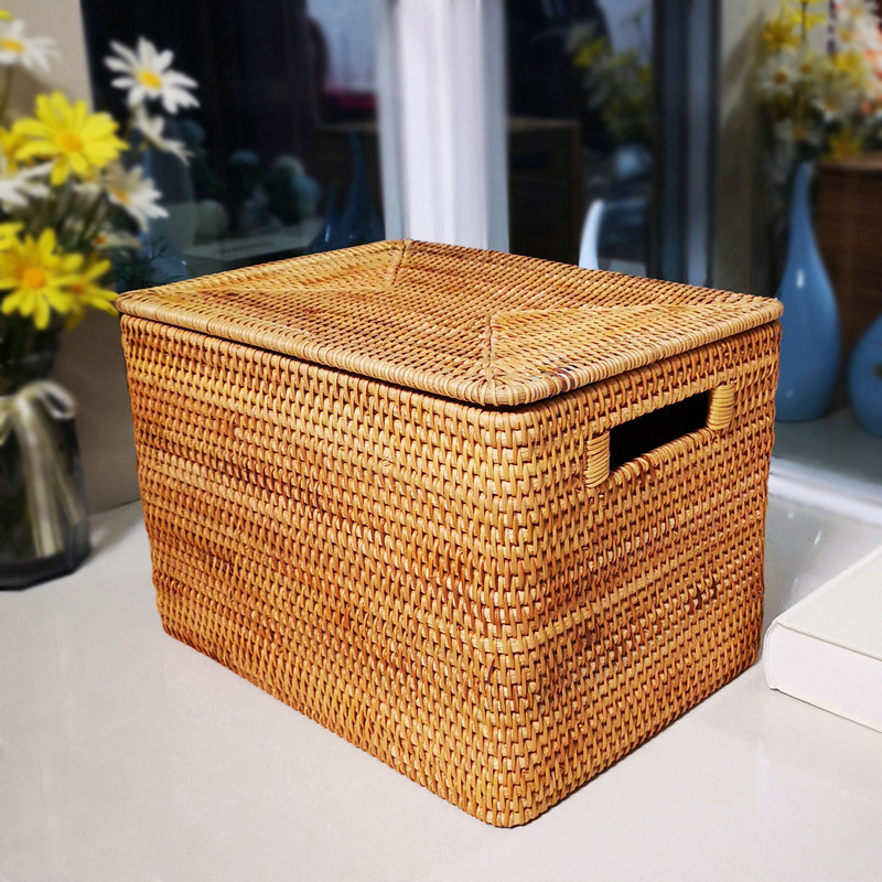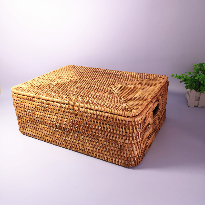 越南藤编收纳箱证件杂物桌面茶几方形带盖储物整理收纳筐厂家直销