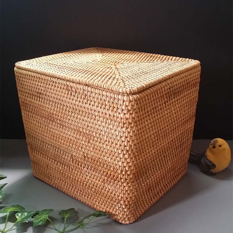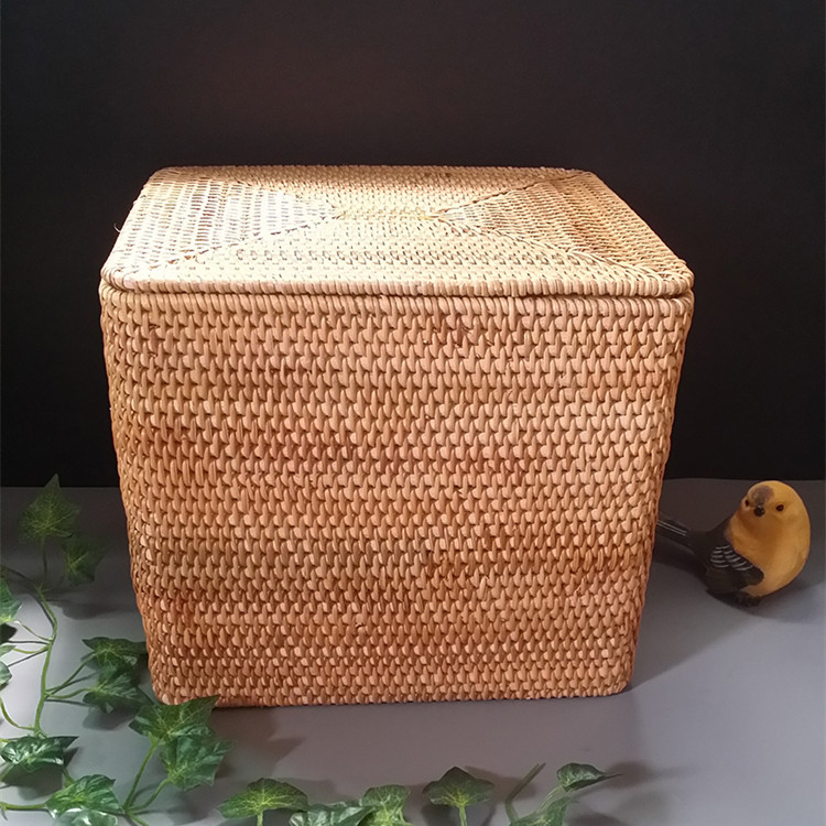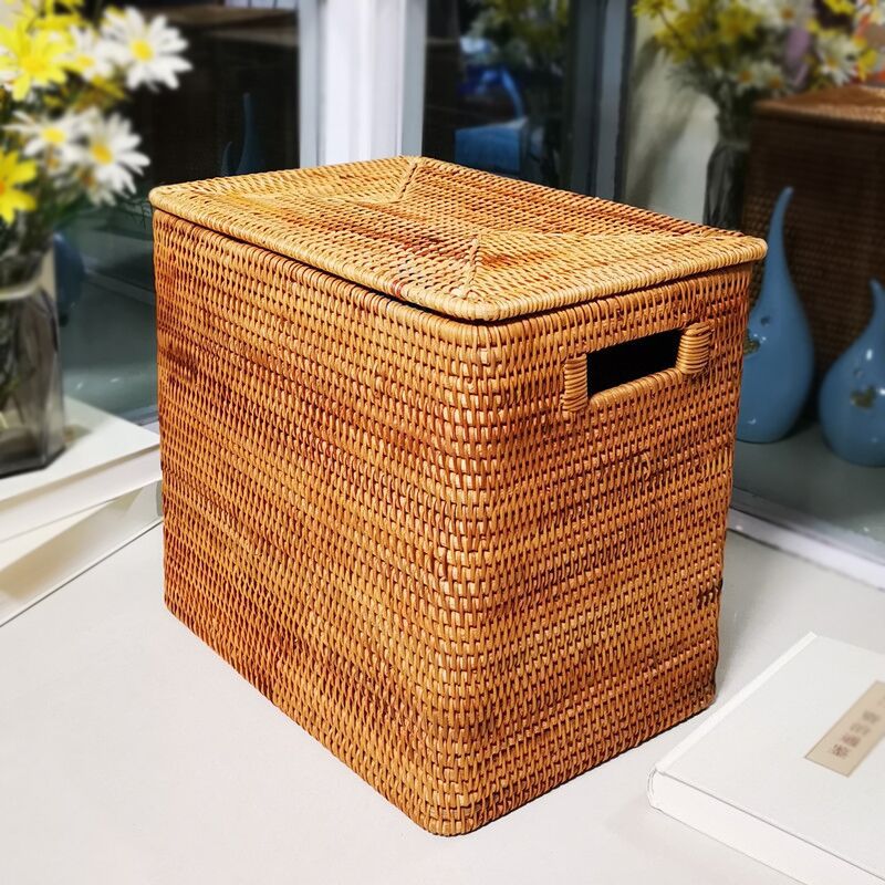 厂家批发越南藤编收纳箱手工物品杂物收纳筐整理框带盖储物整理箱