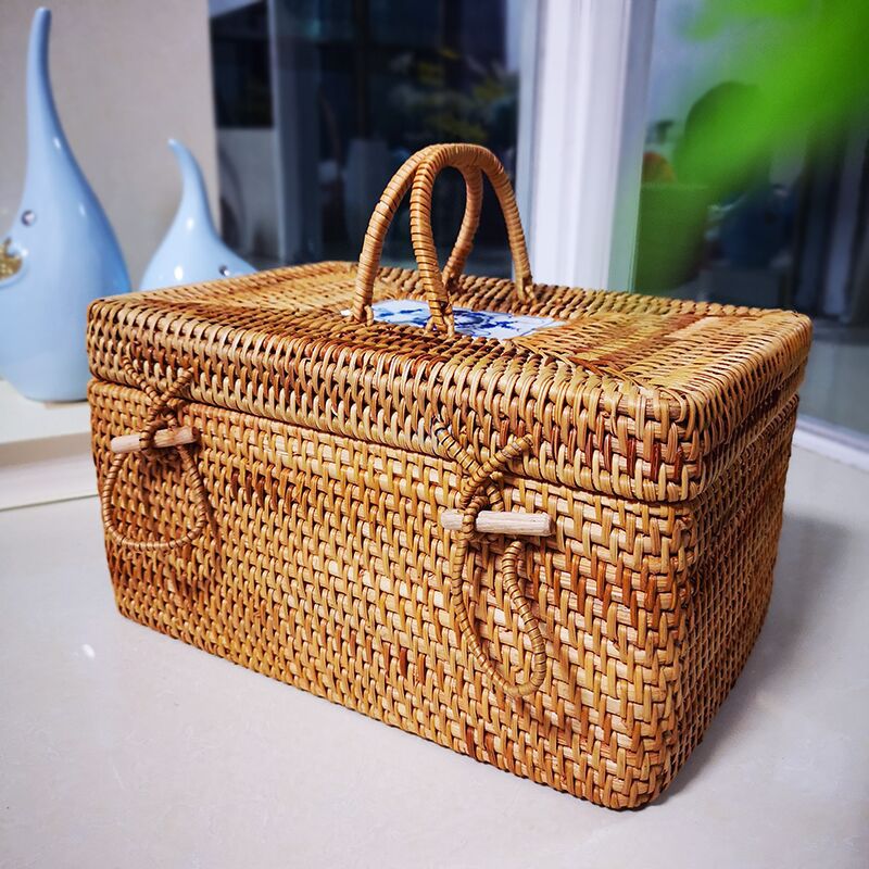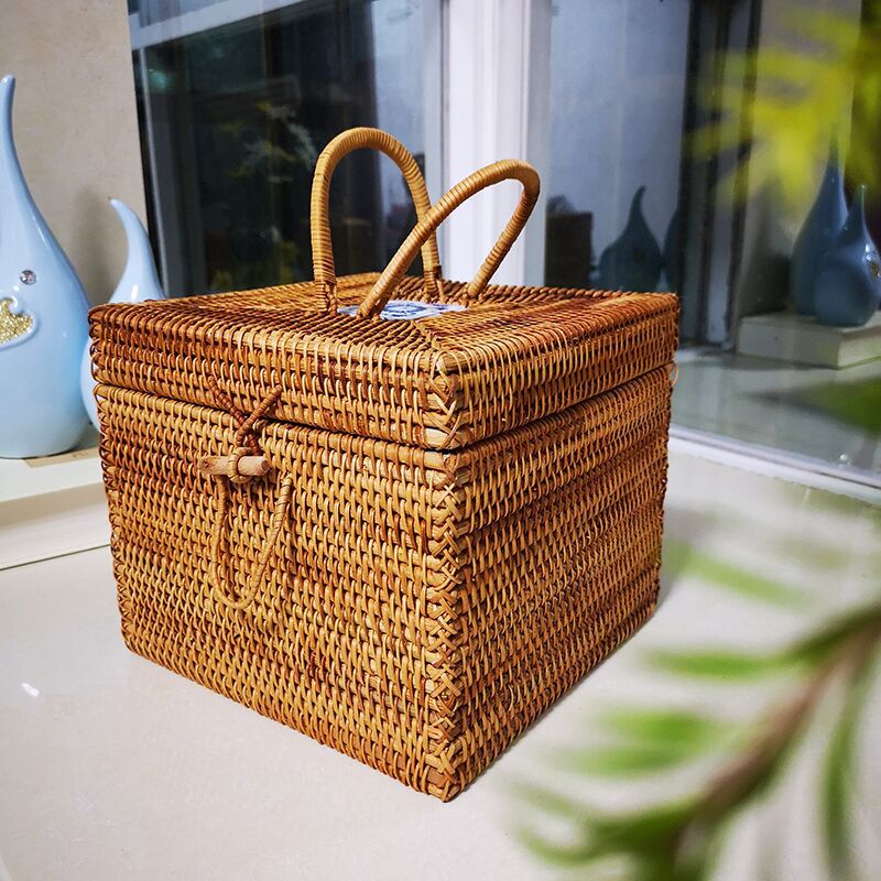 厂家批发华飞越南藤编手提收纳盒普洱茶砖箱手提方形储物箱09