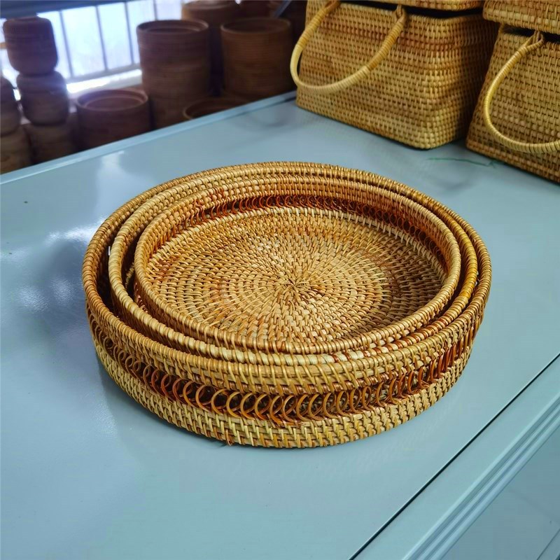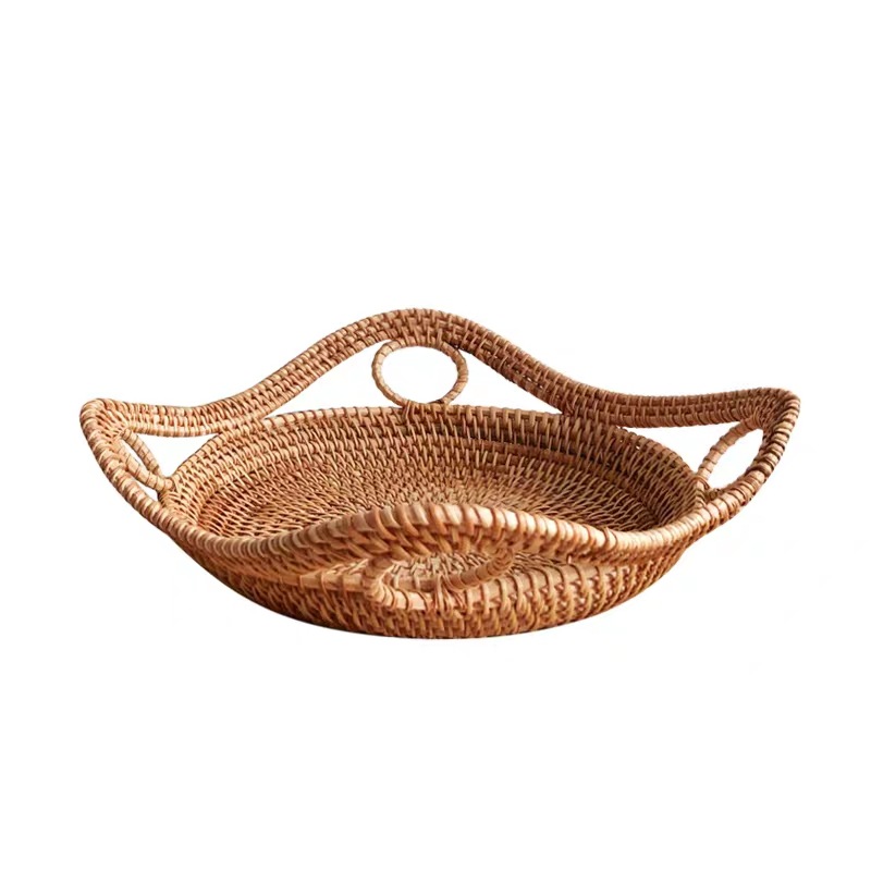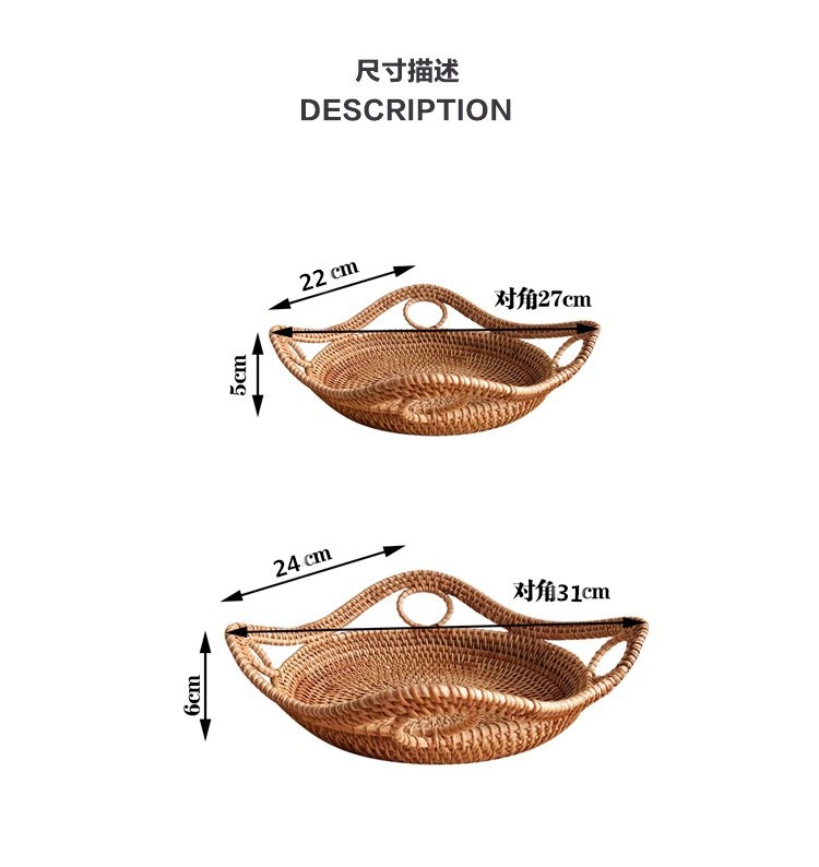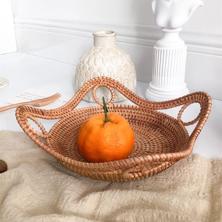 厂家批发东南亚藤编果盘编织缕空收纳筐欧式水果点心盘器具