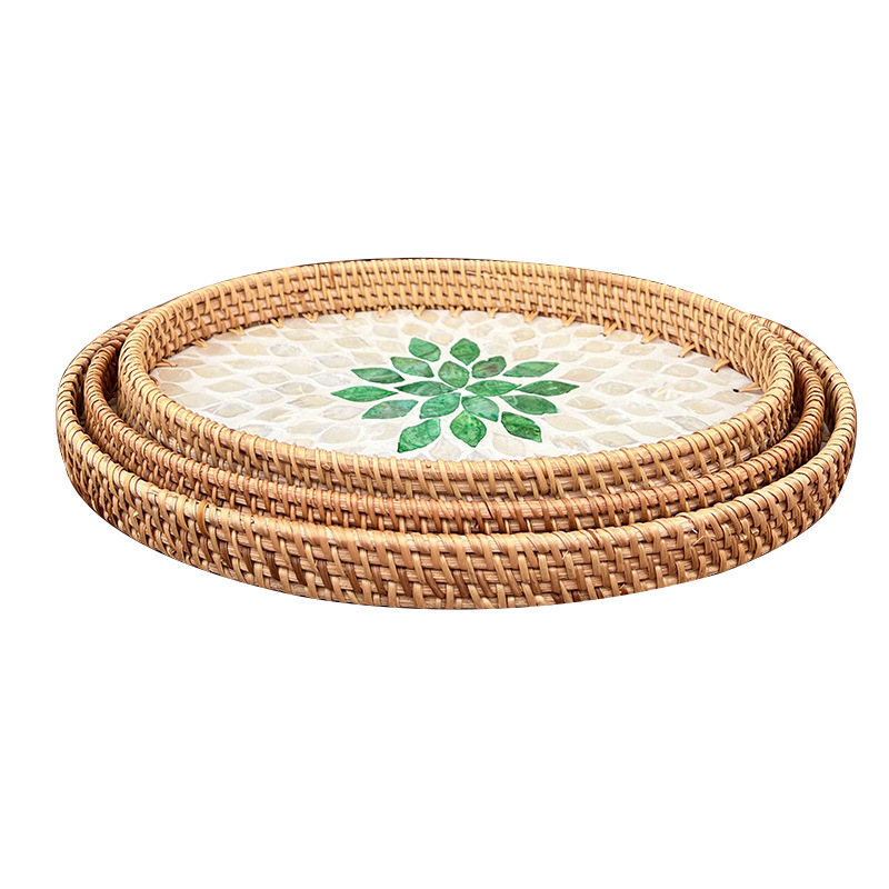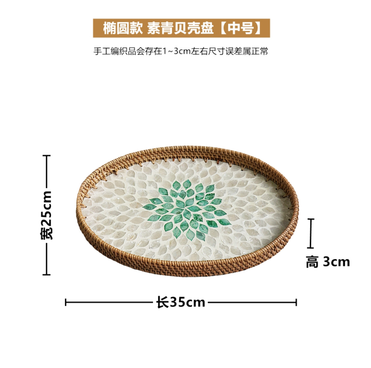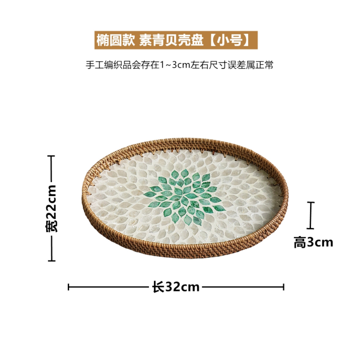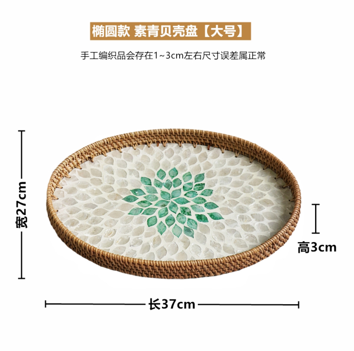 藤编贝壳托盘手提面包点心盘水果筐零食糖果面包篮馒头收纳托盘