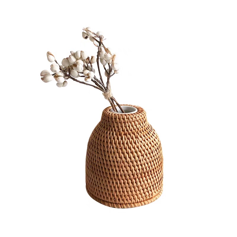 东南亚藤编花瓶手工编织工艺品摆件日式花器禅意插花器皿厂家批发