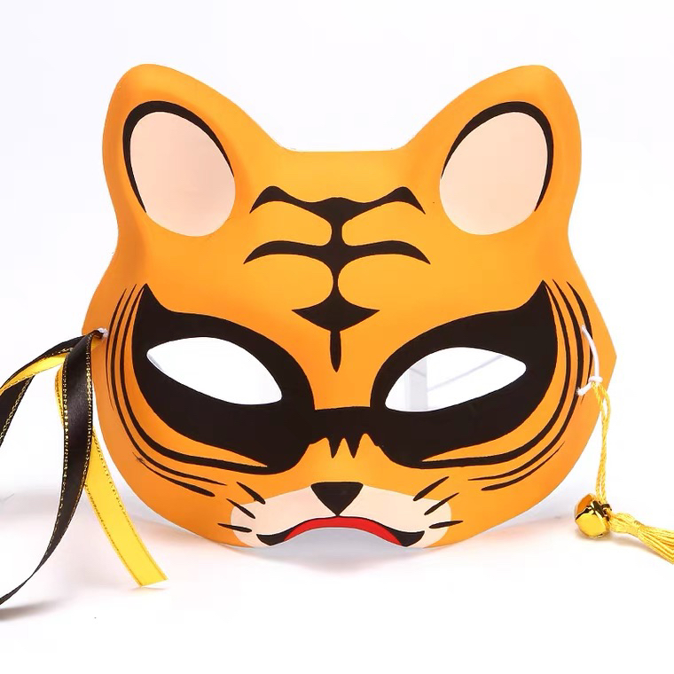 新款虎年老虎头面具半脸狐狸 狐狸猫虎头搞怪舞会整蛊复活节道具