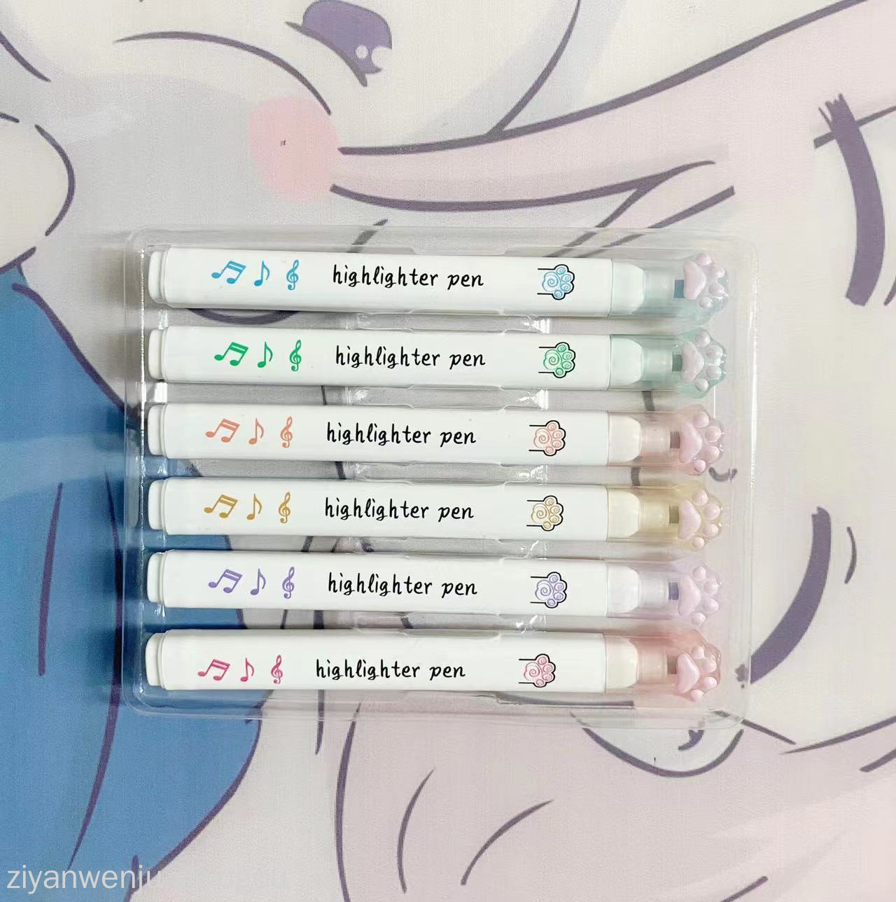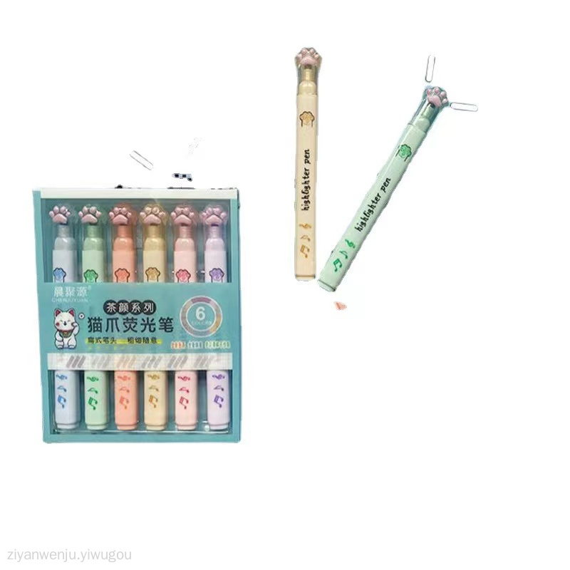 可爱猫爪莫兰迪色单头荧光笔6色护眼色学生标记手帐记号笔套装