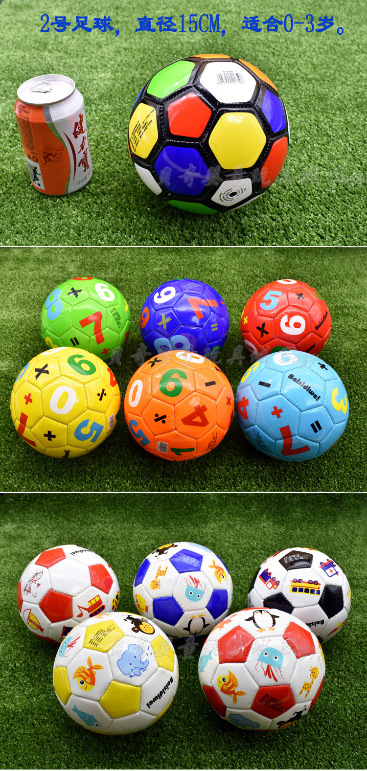新款2号儿童足球宝宝幼儿益智动物数字水果汽车练习玩具球环保PU