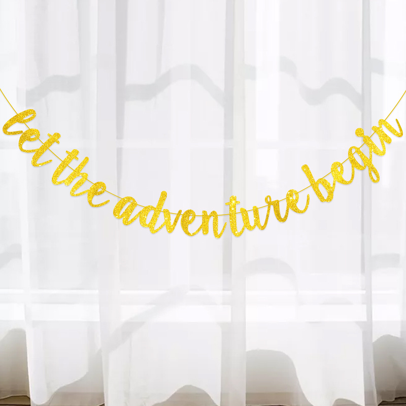 横幅let the adventure begin闪粉拉花订婚告别退休装饰旗