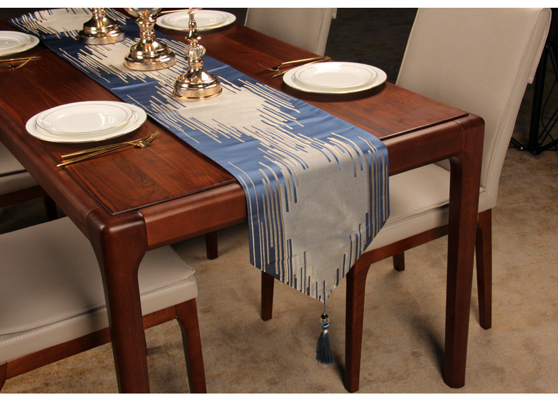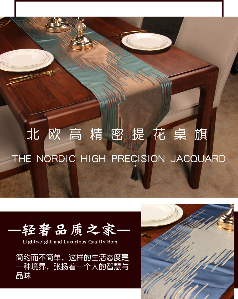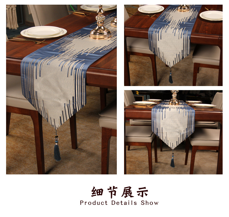 北欧条纹餐桌桌旗现代简约轻奢几何清新茶几旗布艺桌布床旗床尾巾