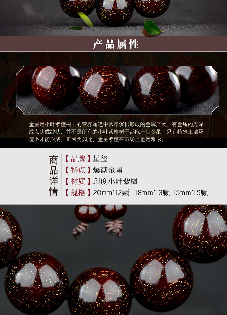 随美野生印度老料爆满金星小叶紫檀手串2.0男款1.8佛珠15mm手链