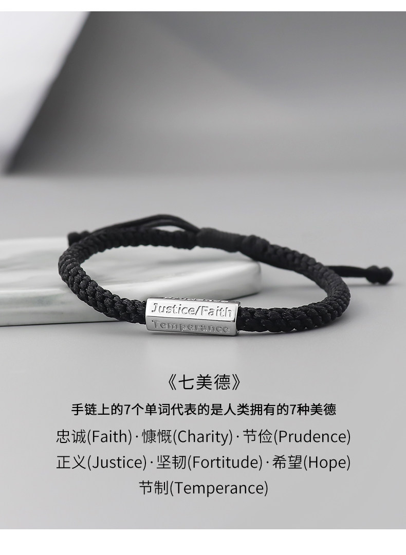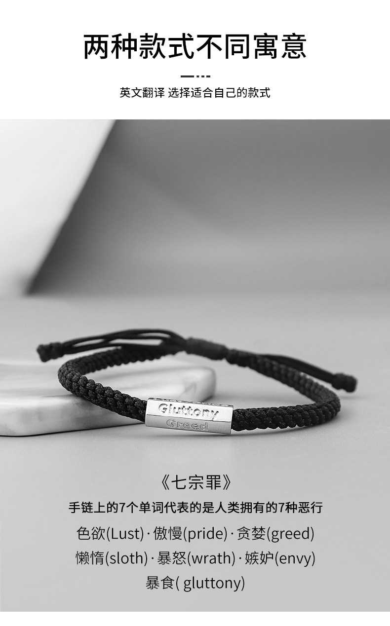七宗罪手链男潮黑色编织绳配饰首饰简约男生手饰男士手绳饰品