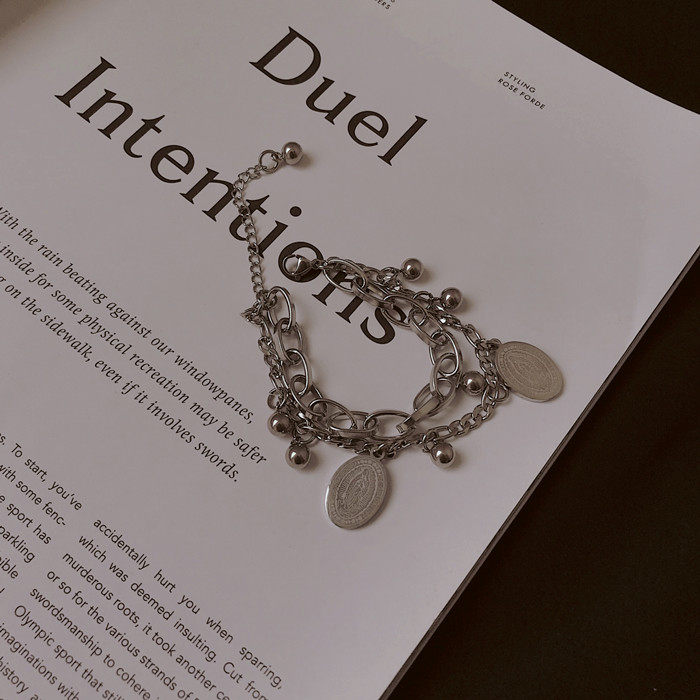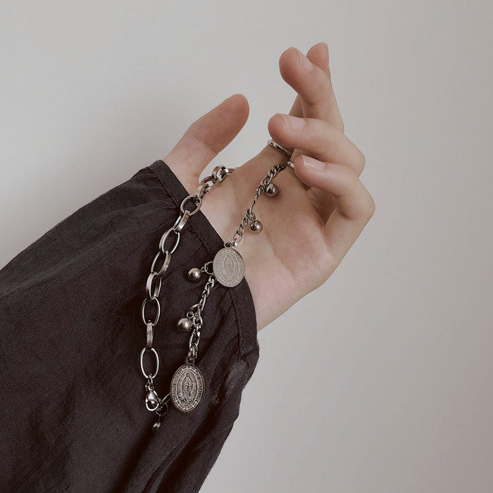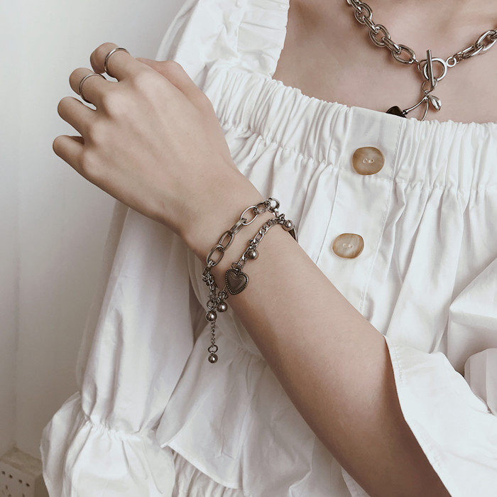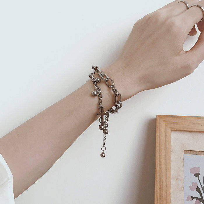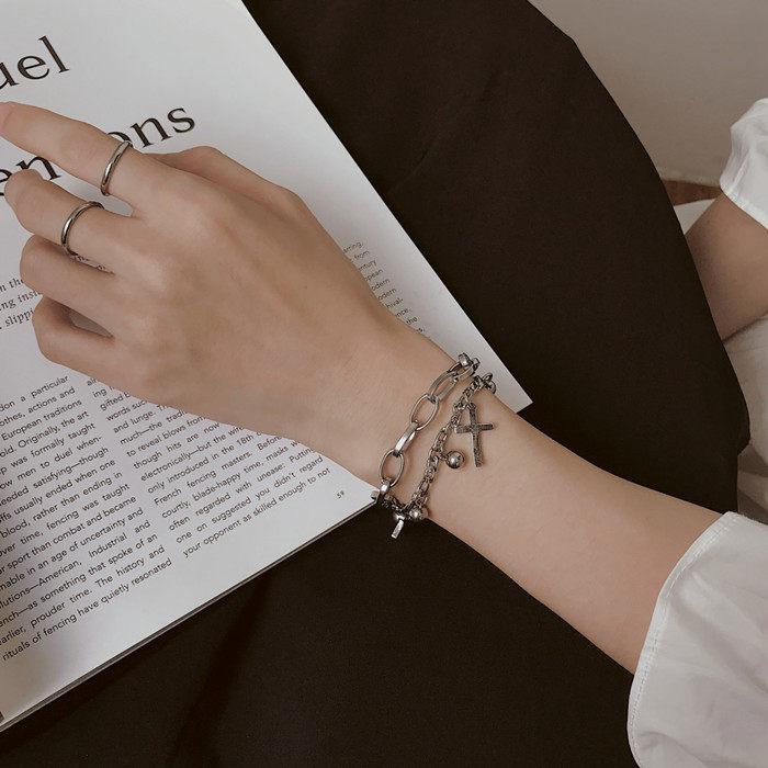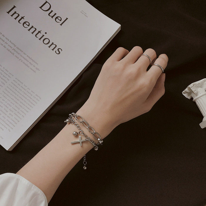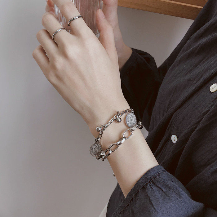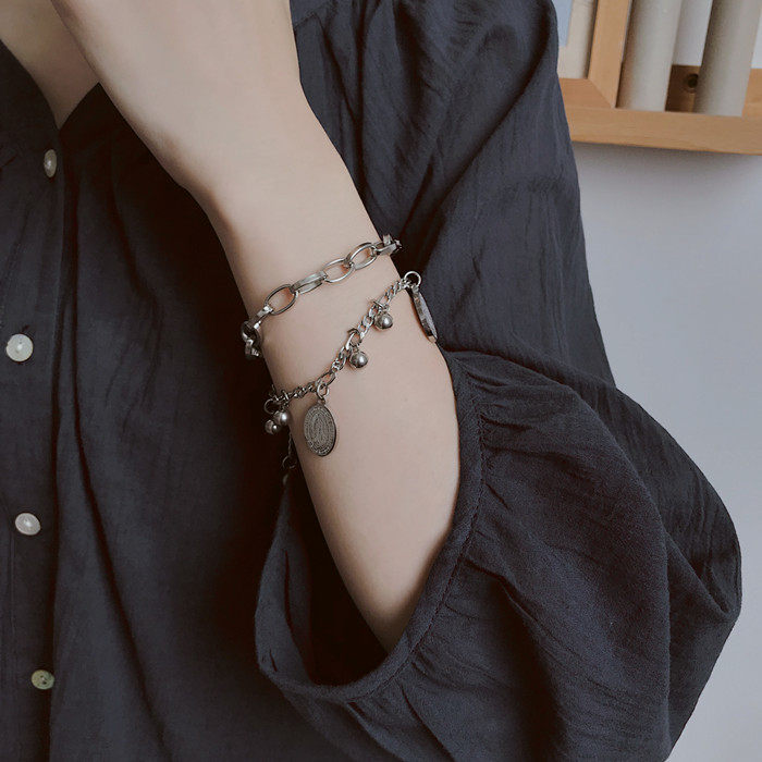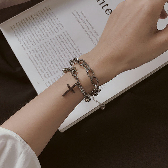 嘻哈复古双层闺蜜手链女ins小众设计韩版简约个性冷淡风手饰男潮