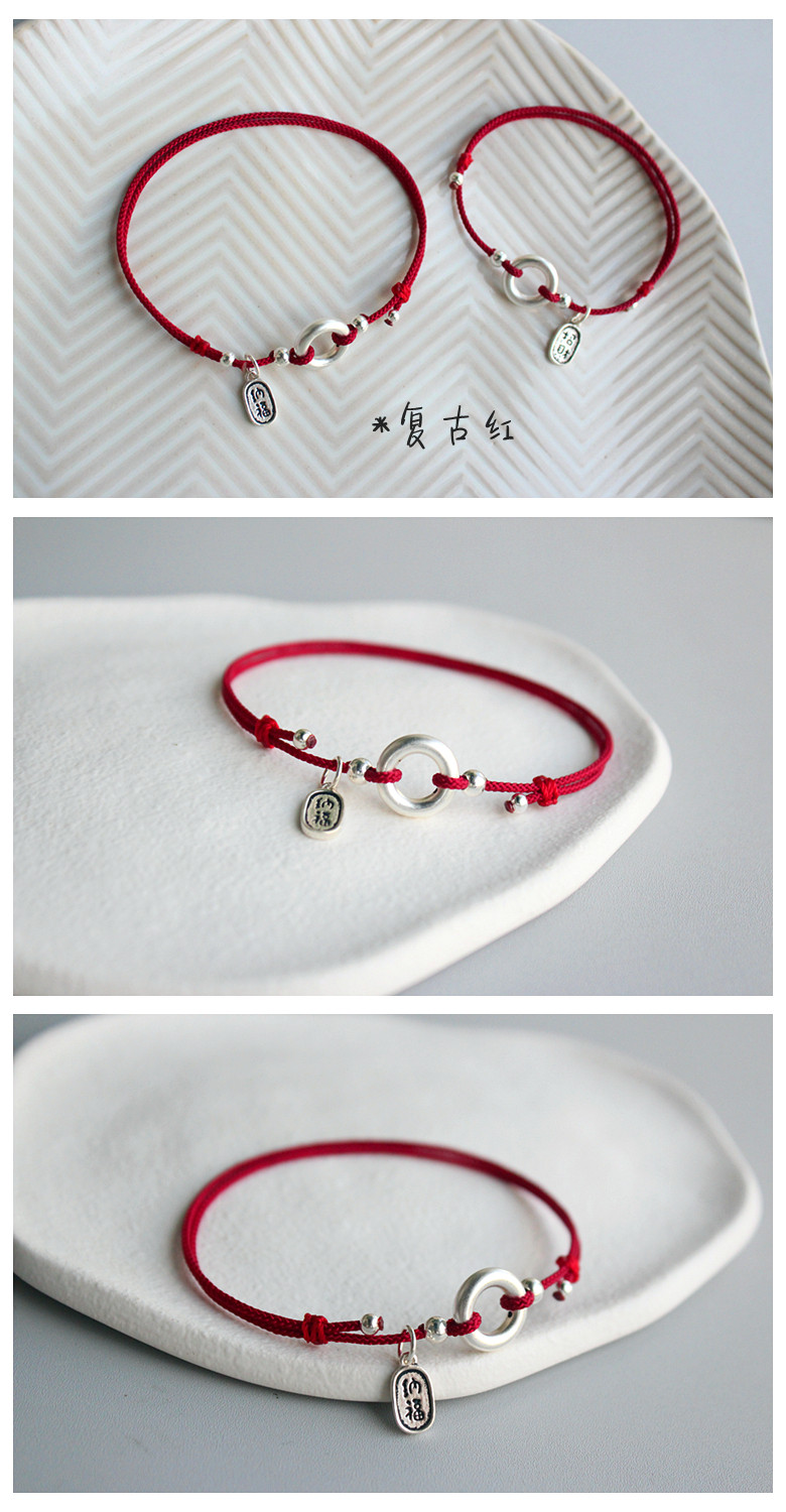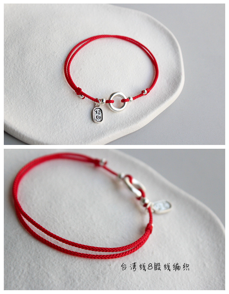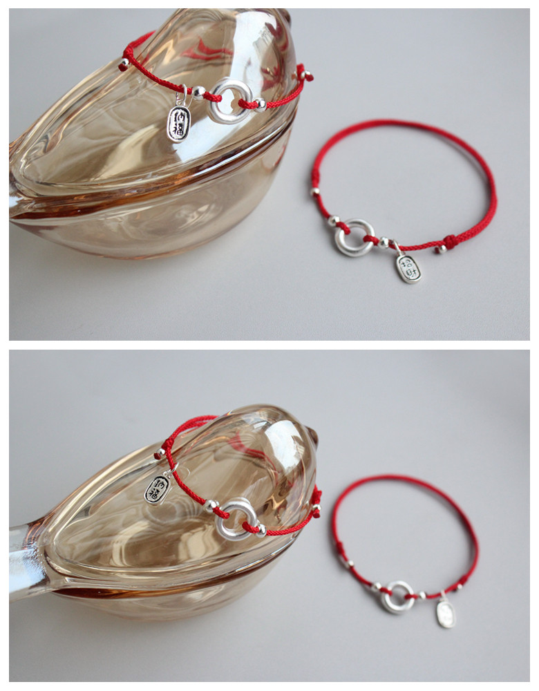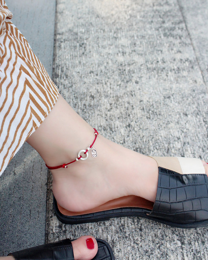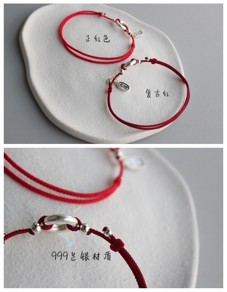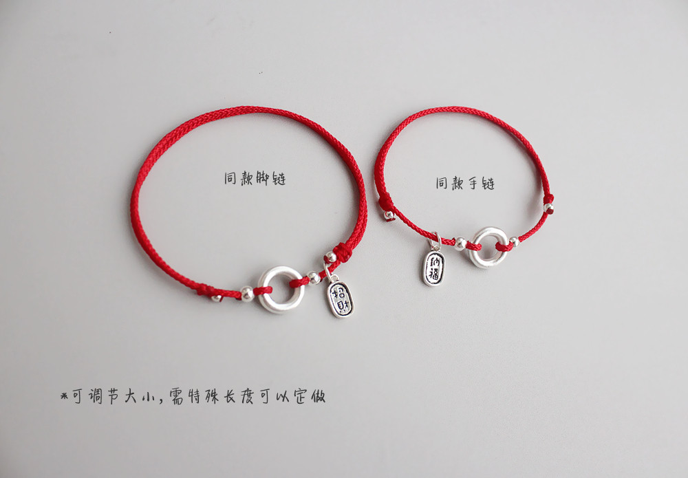 999足银平安扣本命年红绳脚链/手链编织2022新款一件代发小红书