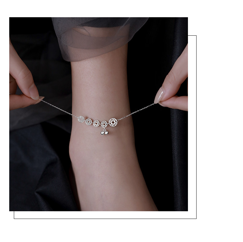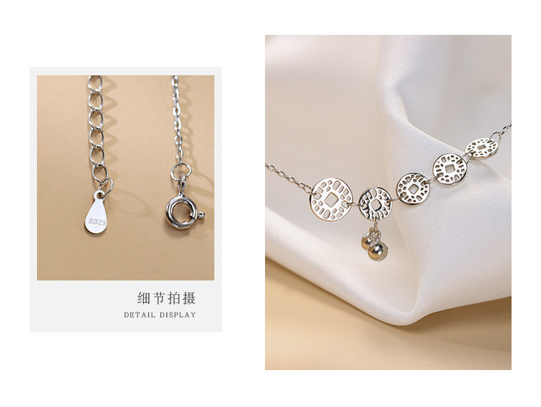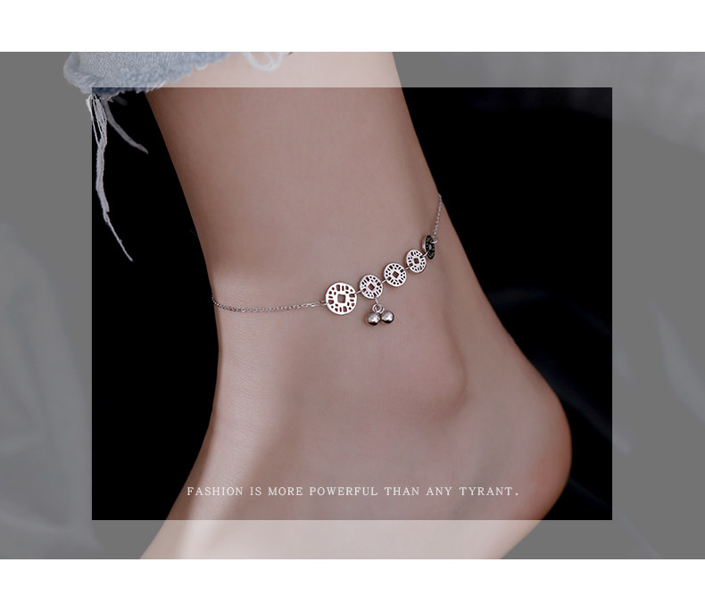 925镀银铜钱铃铛脚链女2021年夏新款潮ins小众感仙气古风2022
