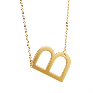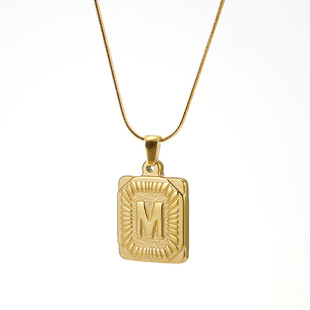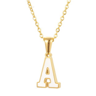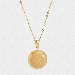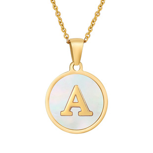 跨境圆形18K金贝壳不锈钢字母项链女欧美钛钢26英文字母吊坠饰品