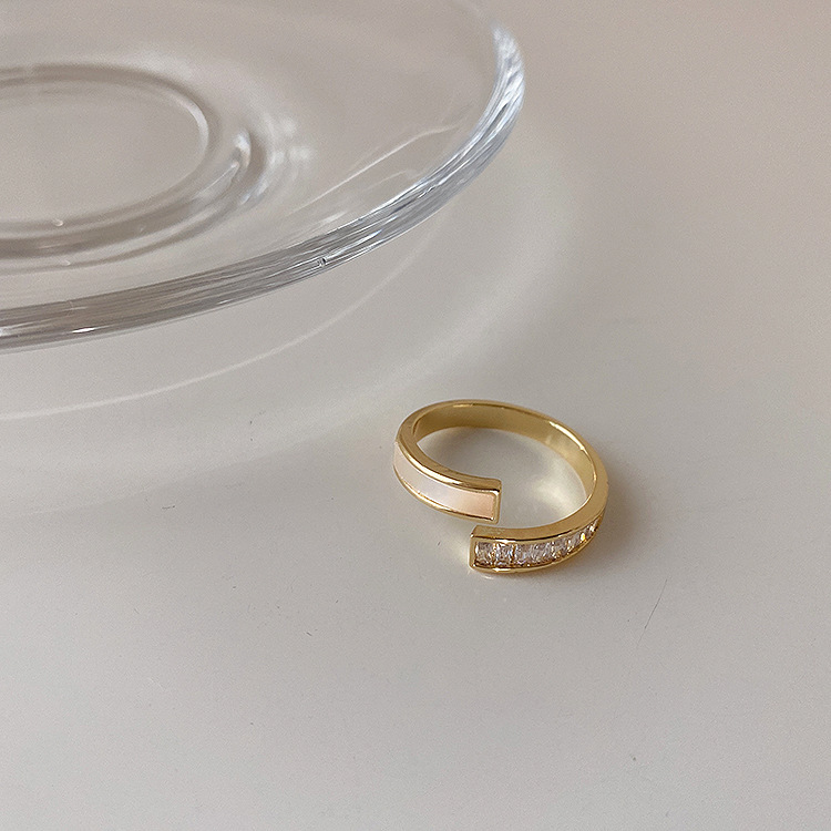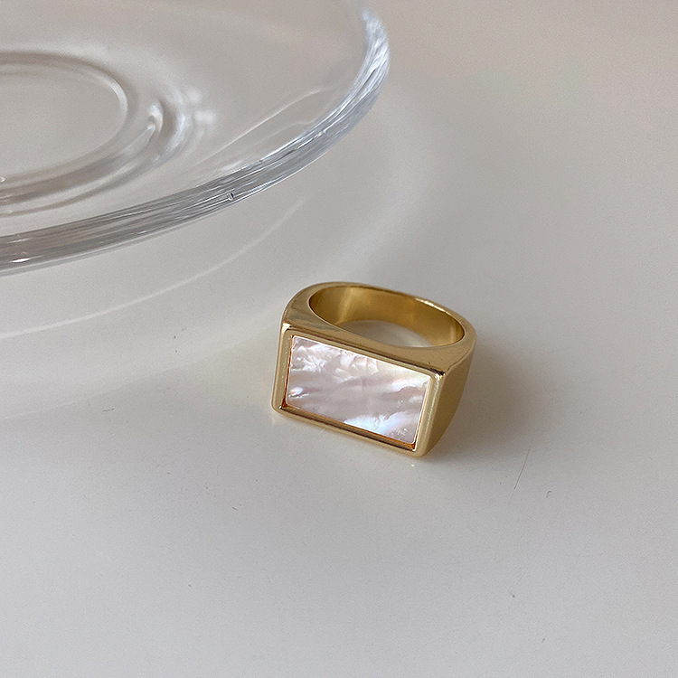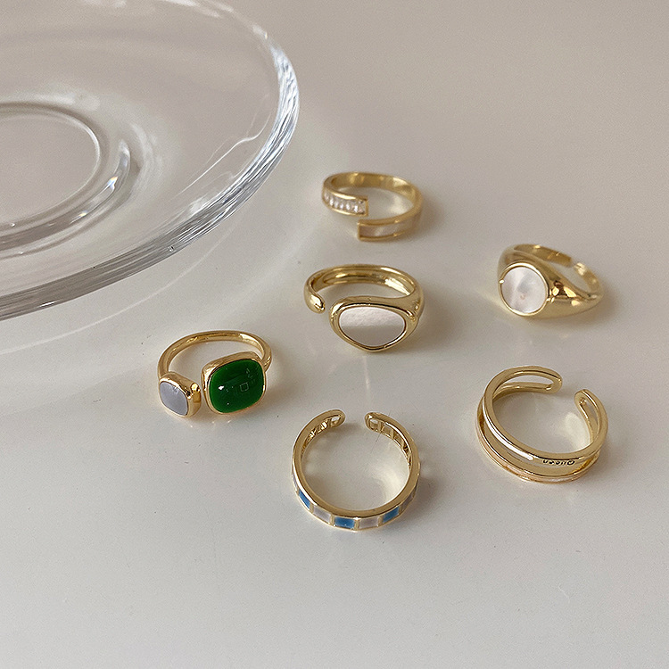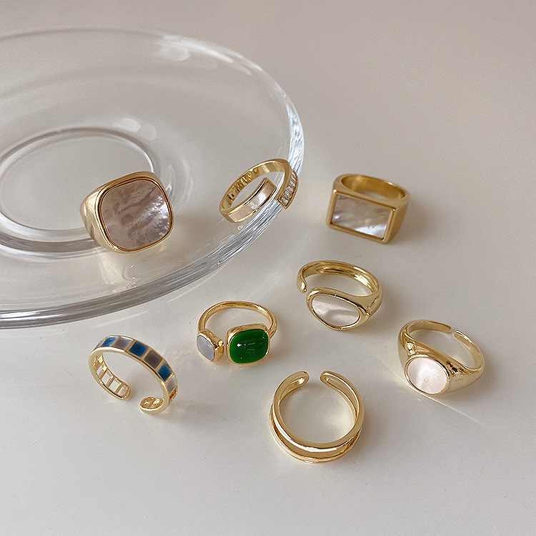 法式复古贝壳滴油棋盘格金属开口戒指女韩国简约百搭气质指环女