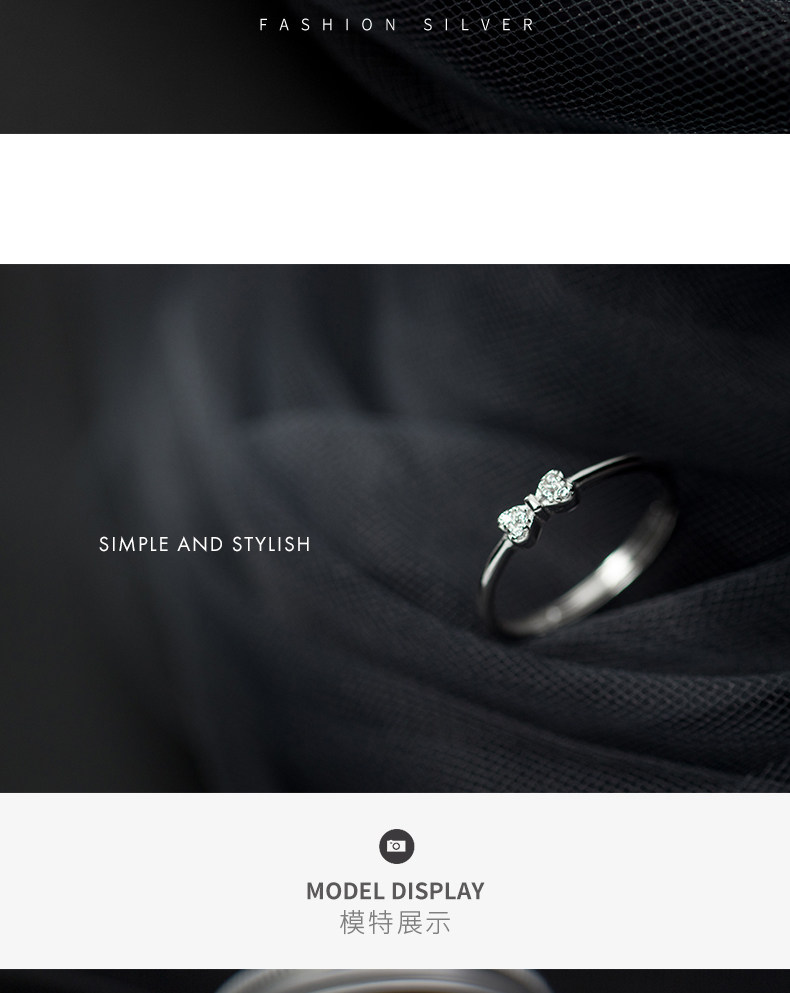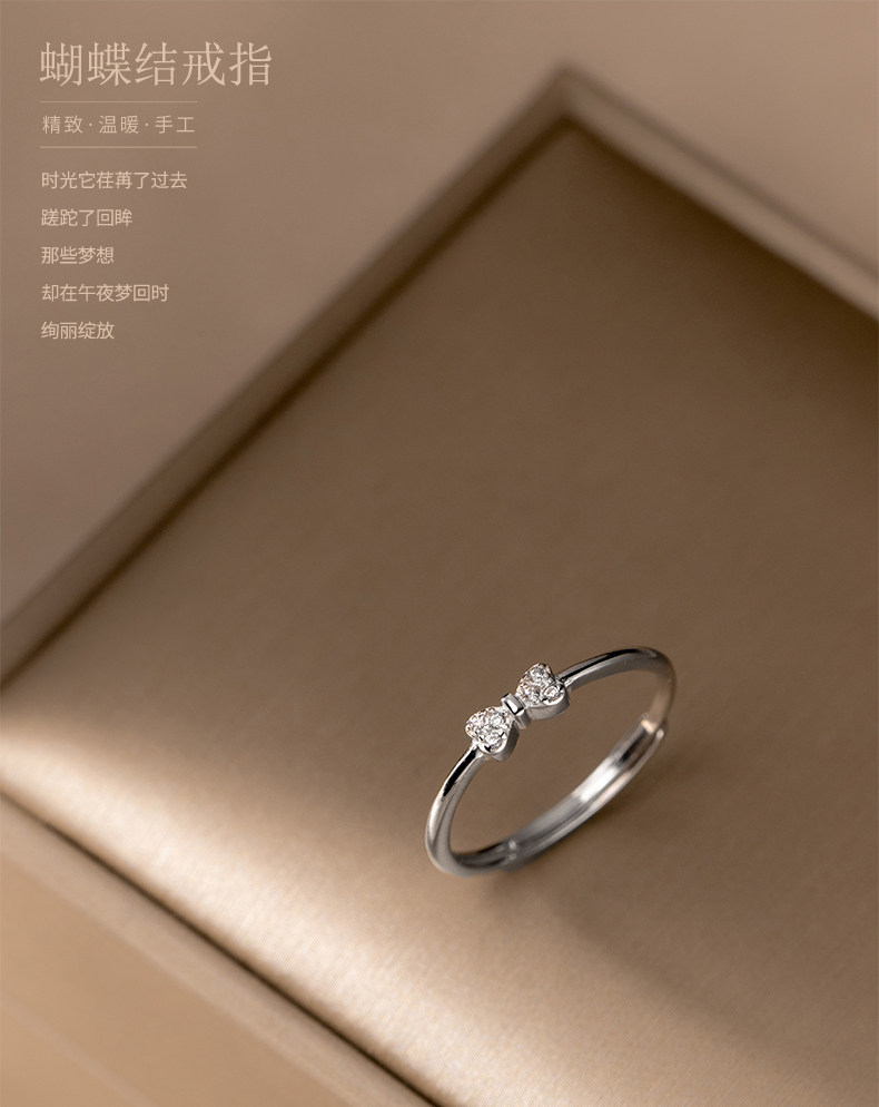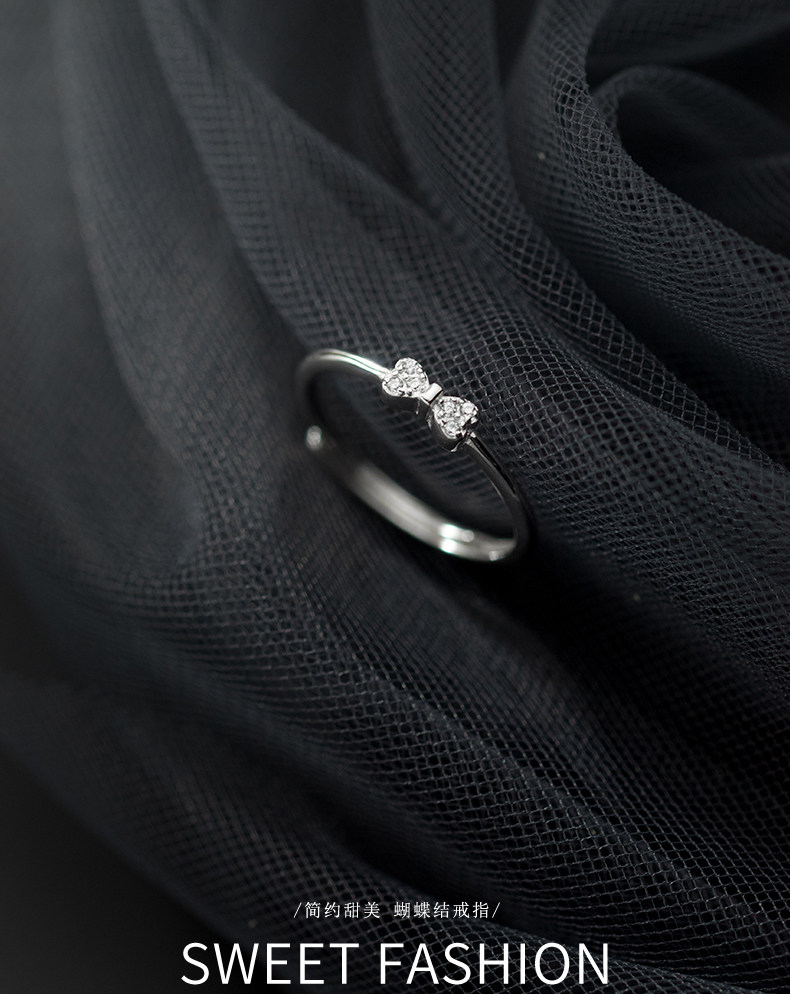 爱洛奇 s925银小清新镶钻蝴蝶结戒指韩版简约淑女甜美食指戒J8143