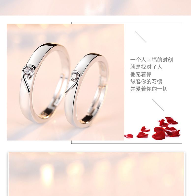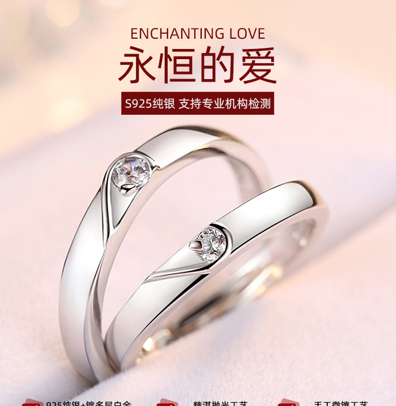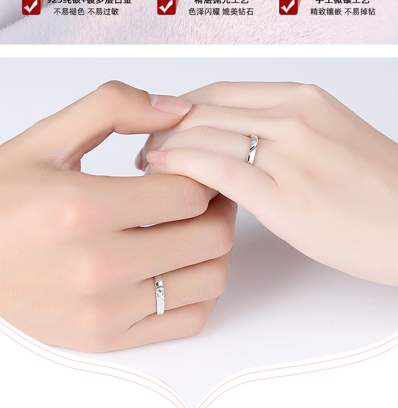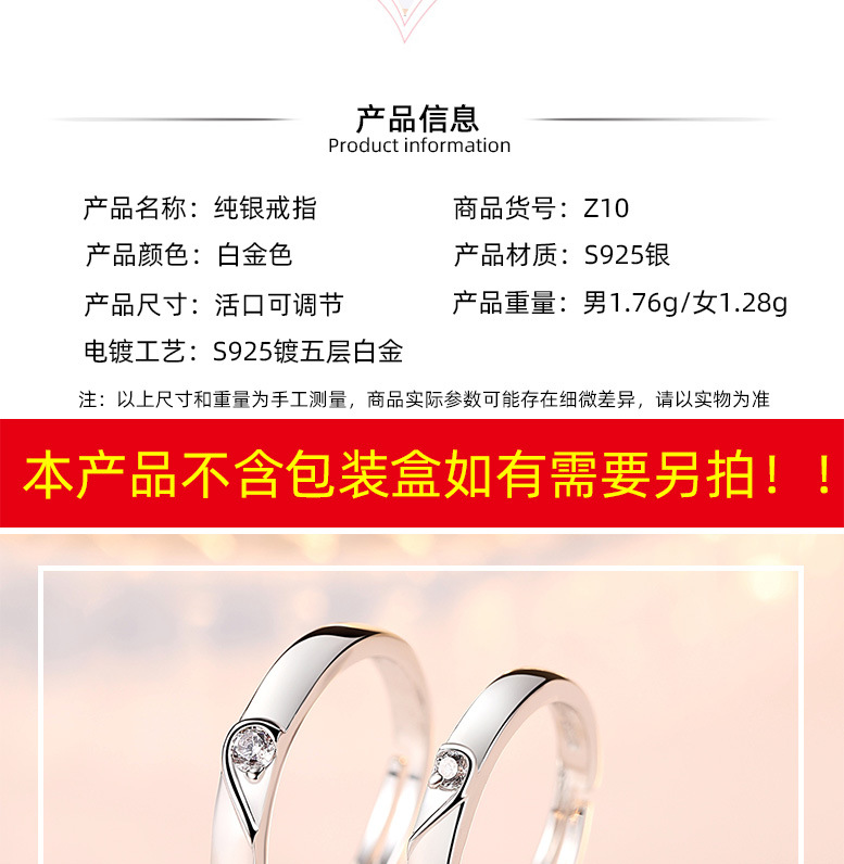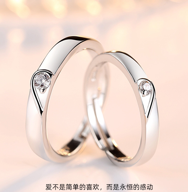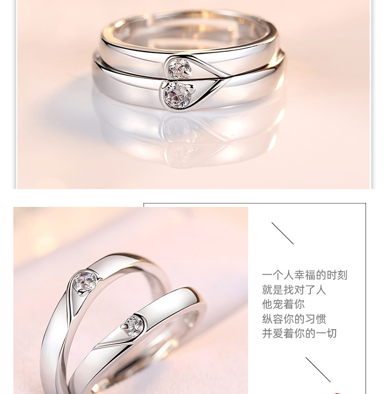 s925开口纯银戒指 女款尾戒情人节礼物心形情侣对戒厂家直销批发