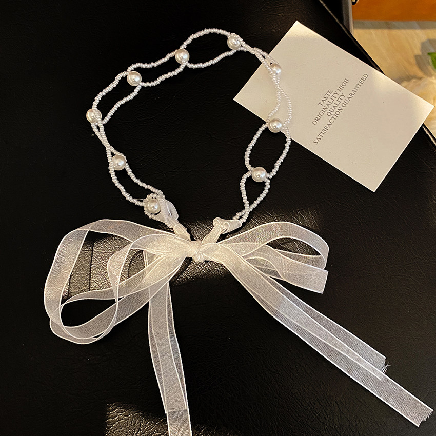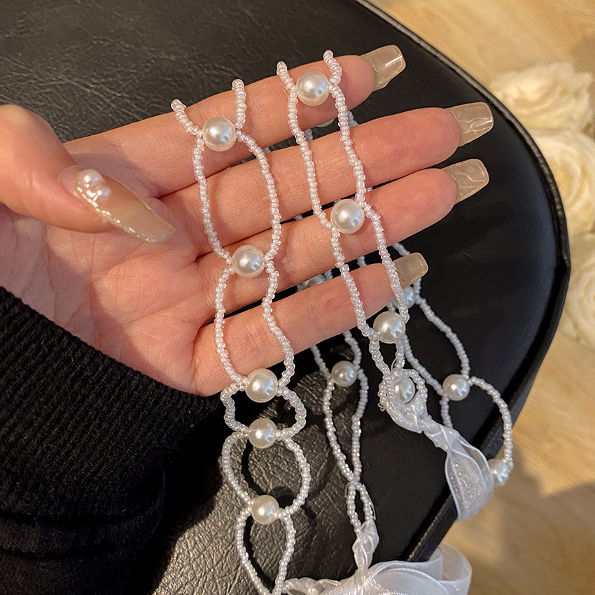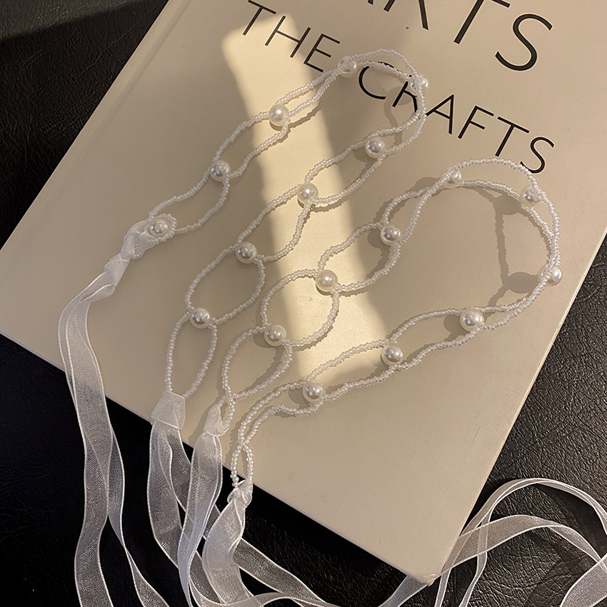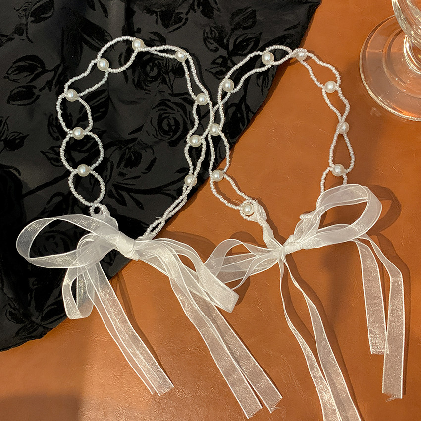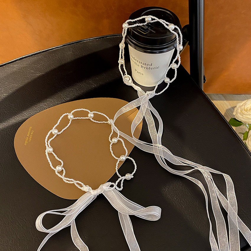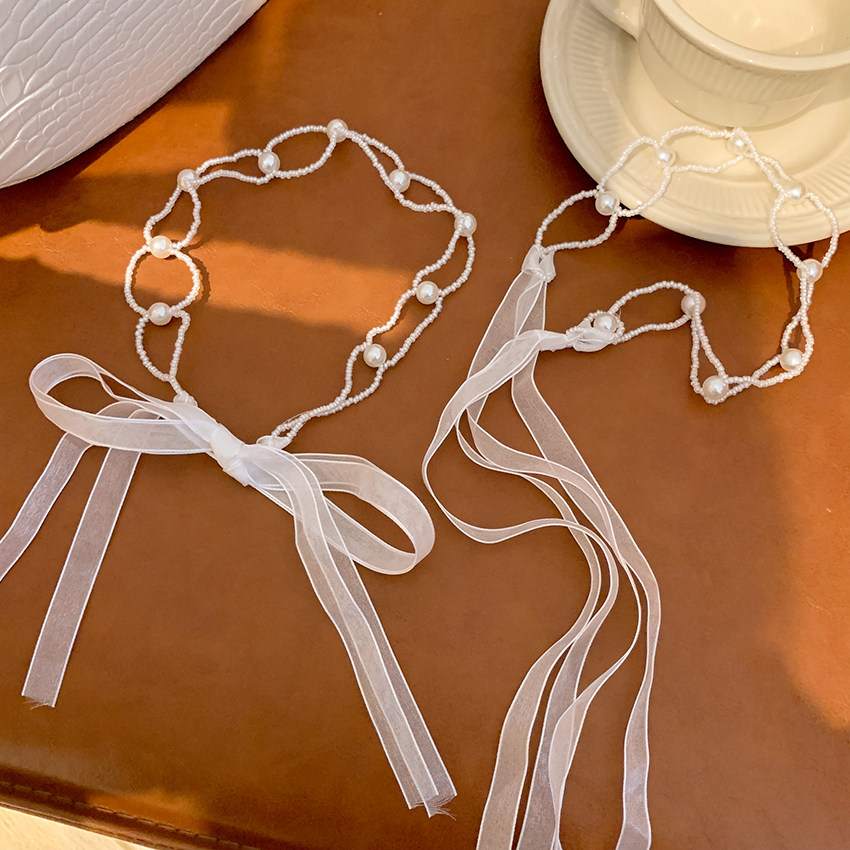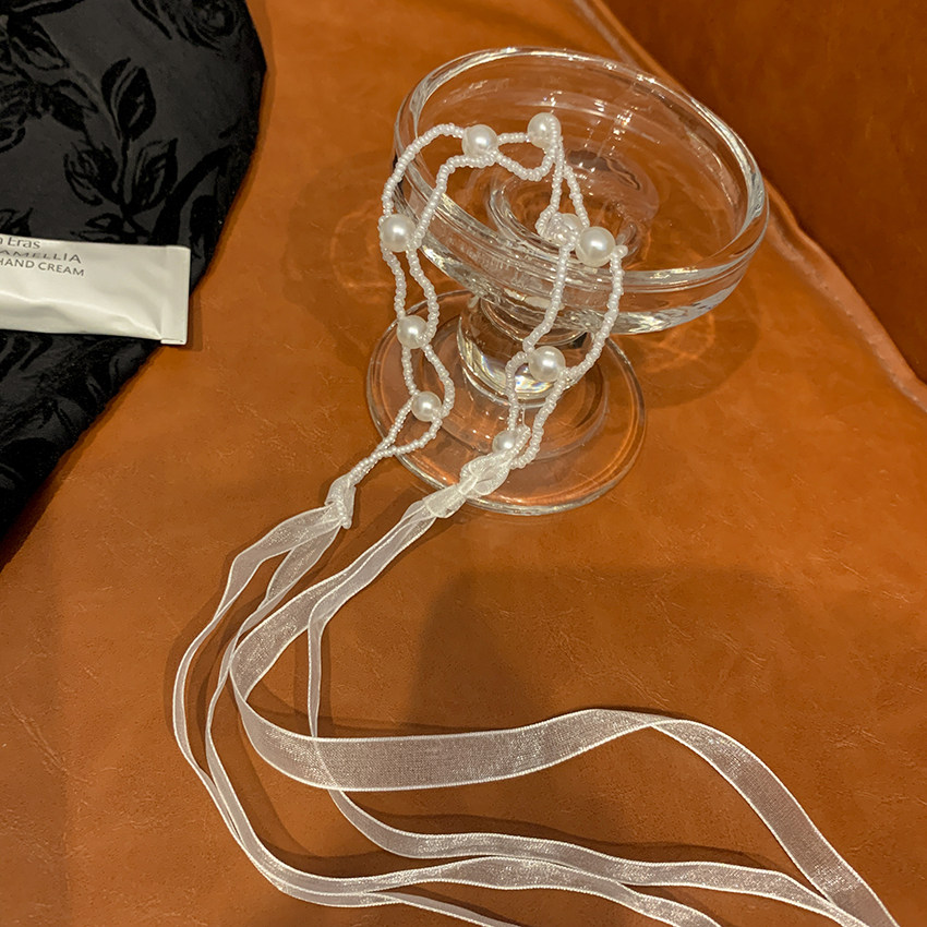 甜茶小公主~仙气珍珠流苏发带女绑发网红2022年新款头绳带飘带女