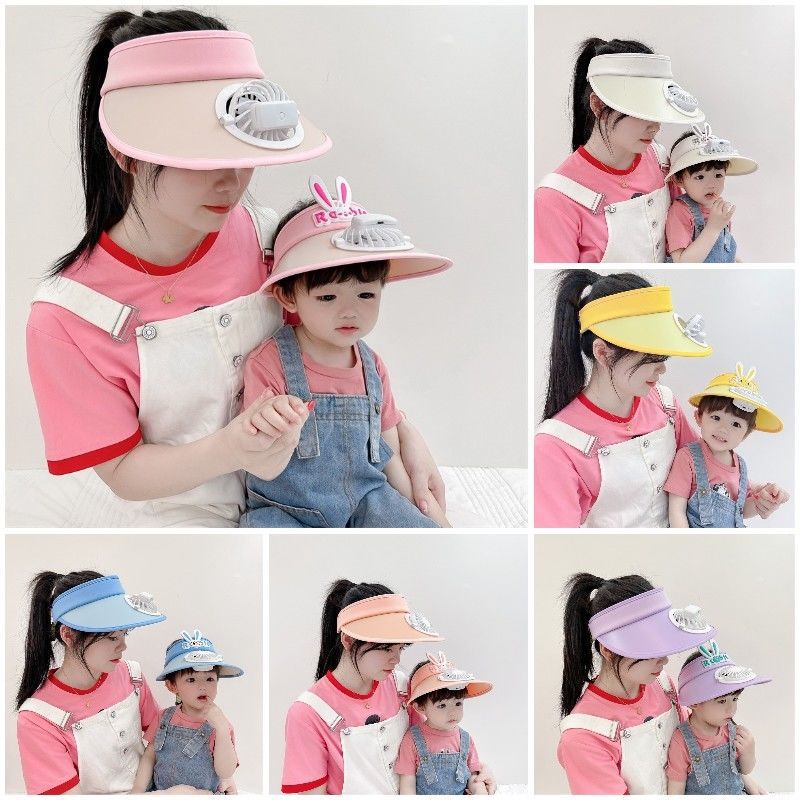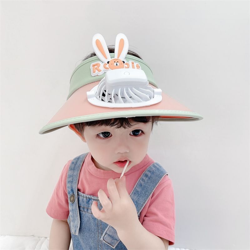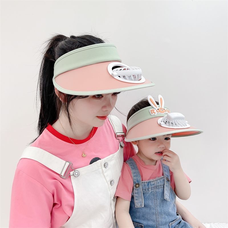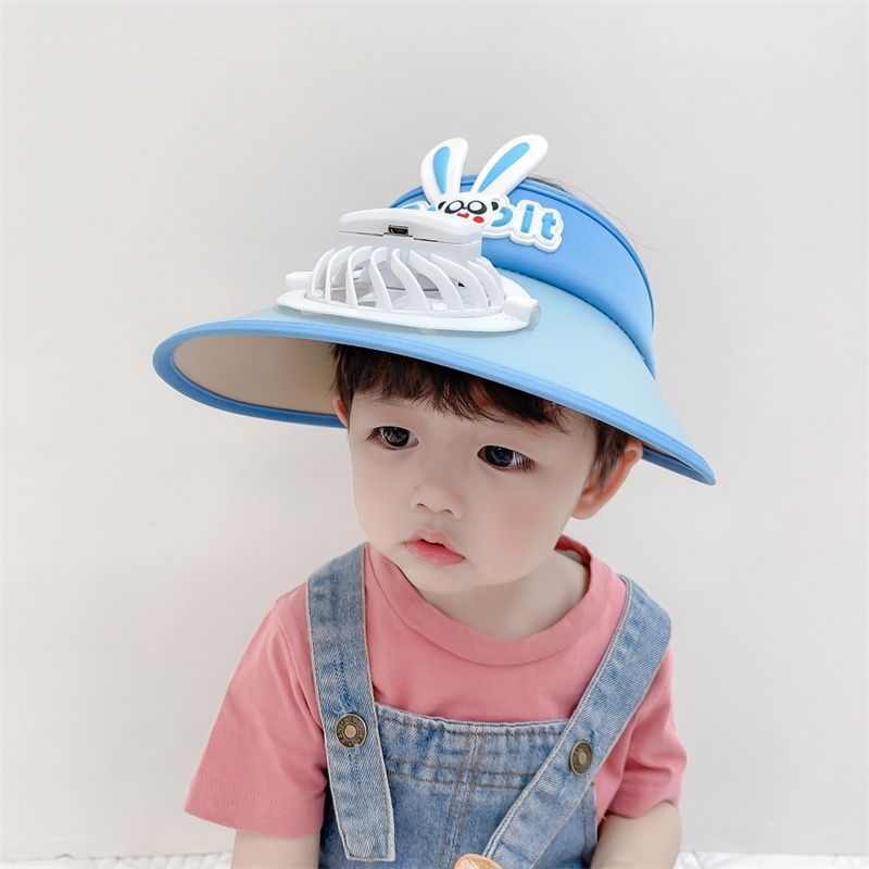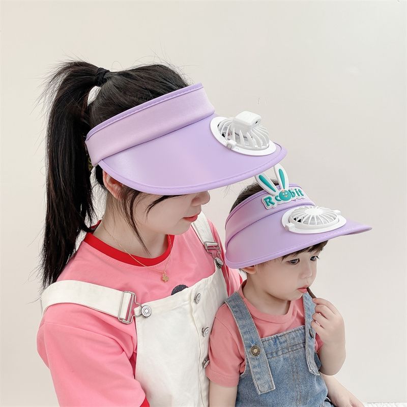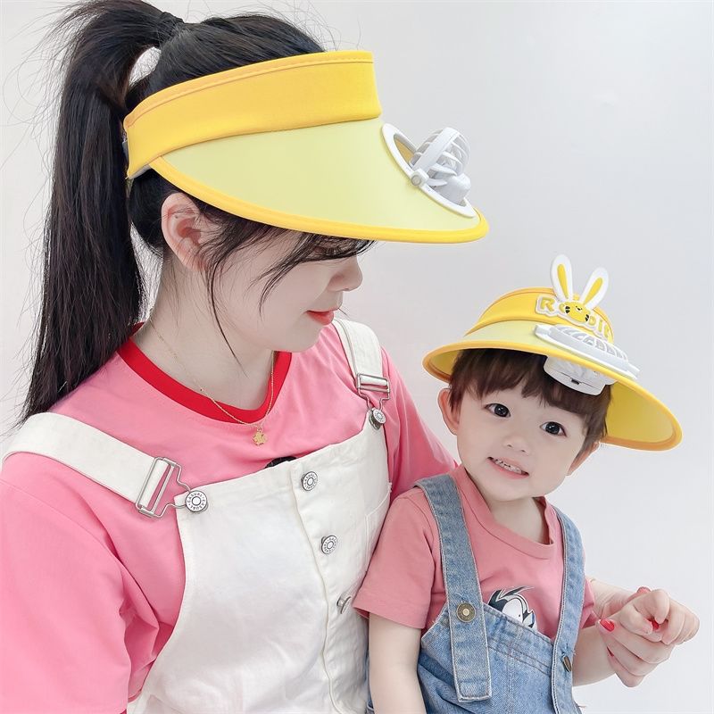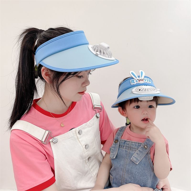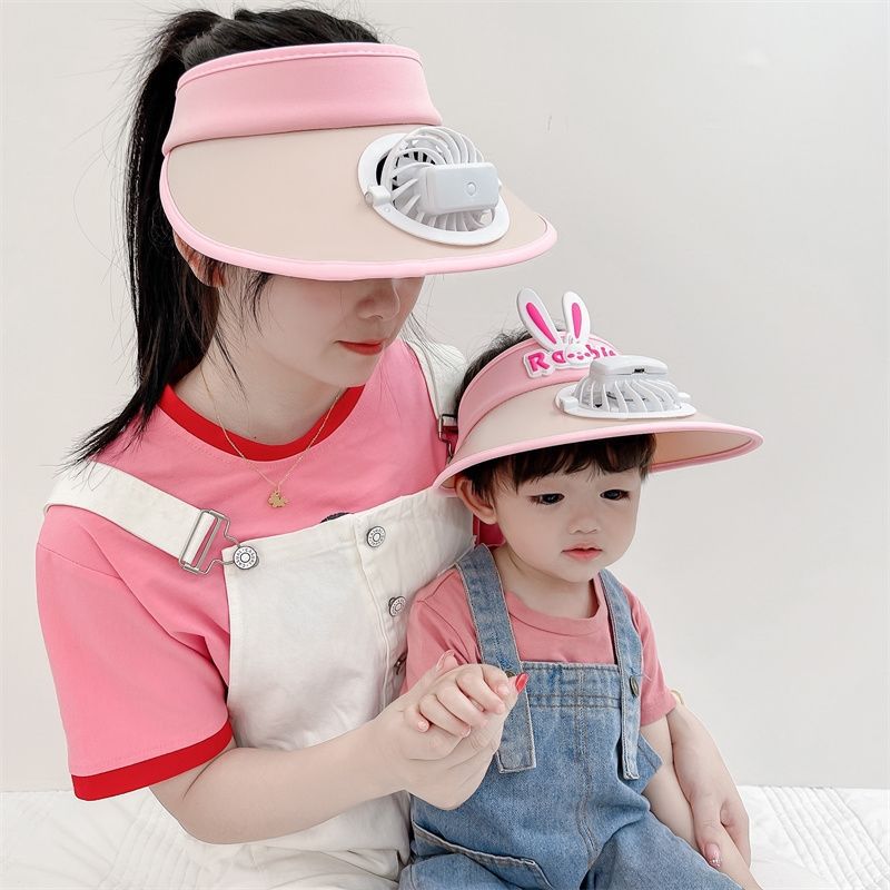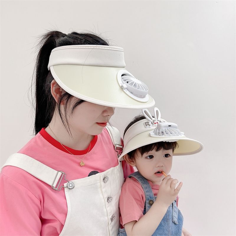 儿童夏季遮阳帽子可充电风扇帽男女童宝宝大檐空顶太阳亲子帽