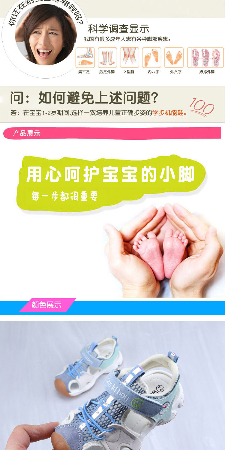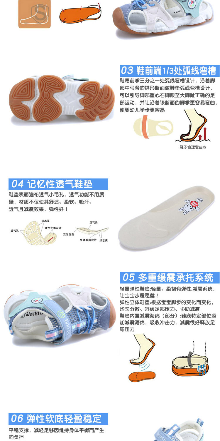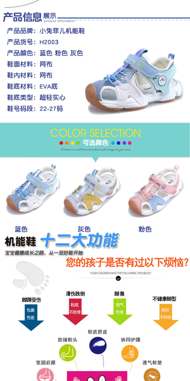 小兔菲儿夏季新款童鞋儿童超轻运动凉鞋包头沙滩凉鞋透气网机能鞋