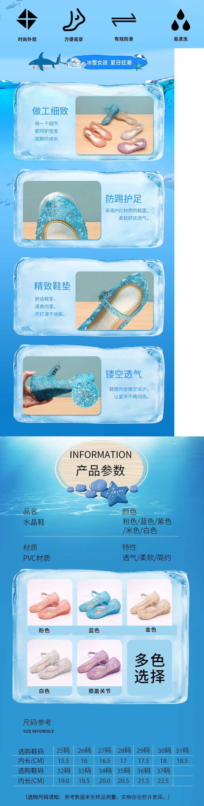 夏季女童凉鞋冰雪奇缘水晶鞋防滑洞洞鞋艾莎公主舞蹈鞋儿童公主鞋
