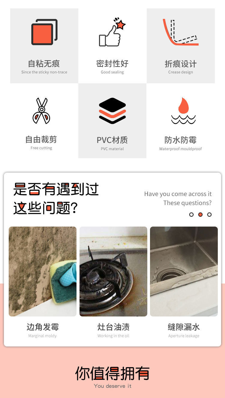 美缝贴浴室厨房防霉马桶贴水池卫生间墙角缝隙防水贴挡水条市