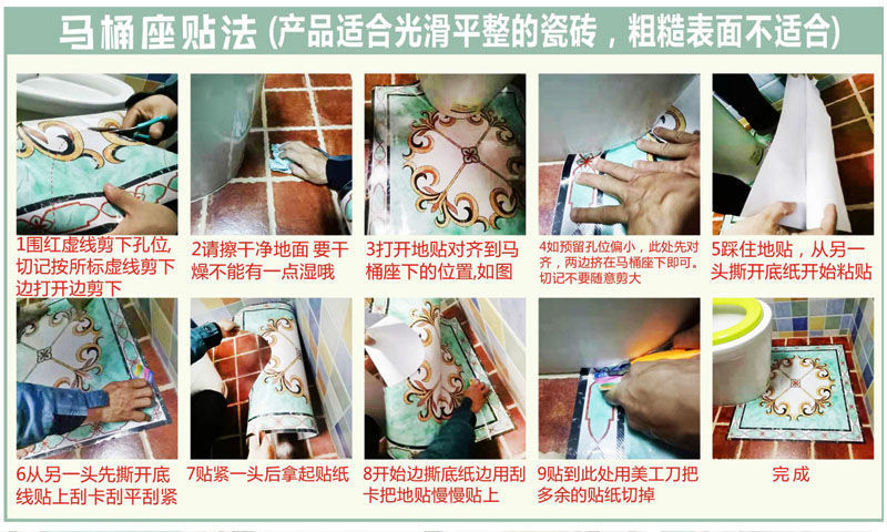 防滑贴防水马桶贴U型马桶贴纸马桶盖贴装饰贴卫生间浴室防滑地贴