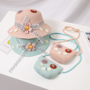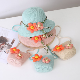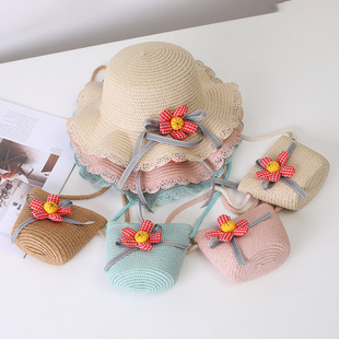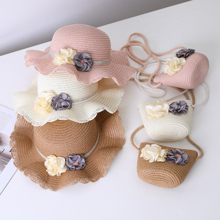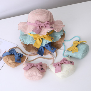 小清新包包中童防晒太阳帽子女童夏沙滩帽波浪草帽遮阳帽儿童凉帽