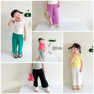 2022夏季儿童防蚊裤男女童坑条宝宝莫代尔冰凉家居空调睡裤面膜裤
