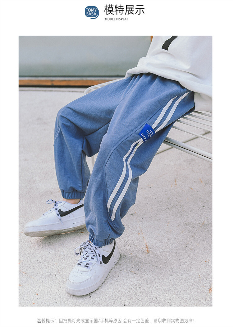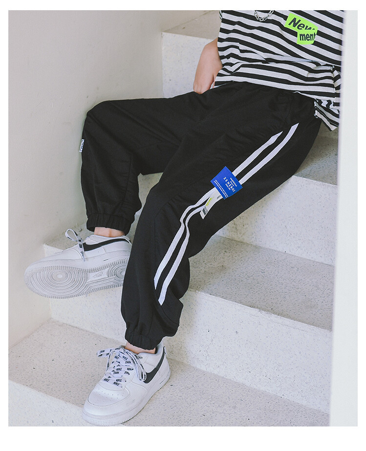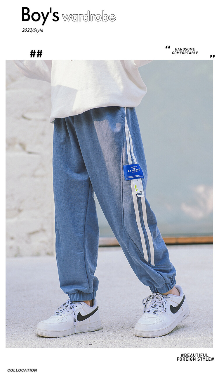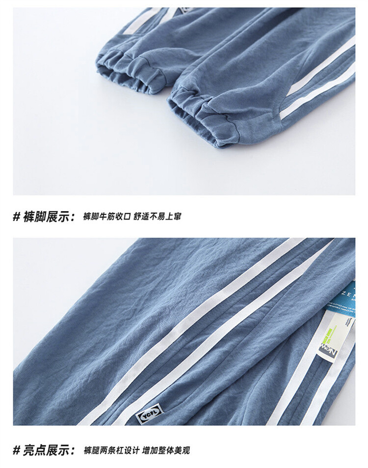 2022新款夏装童装儿童长裤边两条杠防蚊裤中大童休闲裤男童空调裤