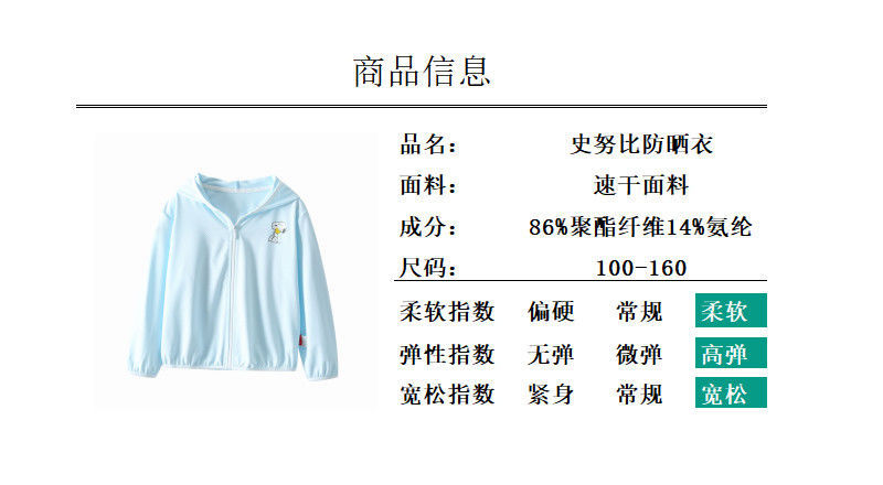 史努比夏季新款儿童网眼透气快干防晒衣男童女童休闲舒适防晒服