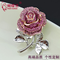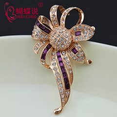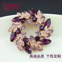 复古水晶紫荆花朵胸针大衣胸花别针女企业礼品圆形胸针衣饰厂家