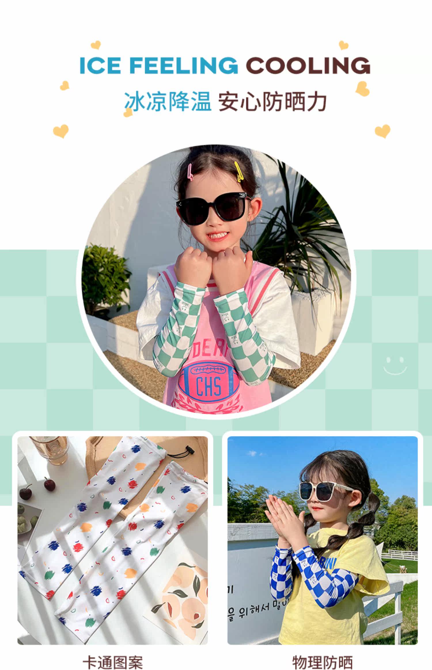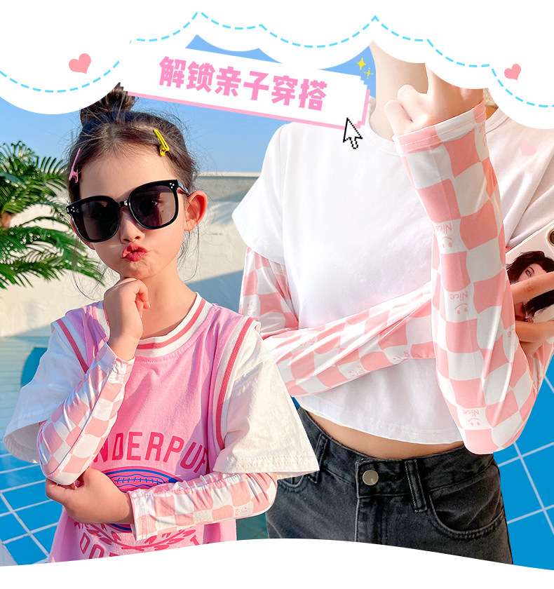 儿童冰袖宝宝袖套夏季冰丝套袖男童女童亲子户外可爱护臂批发手套