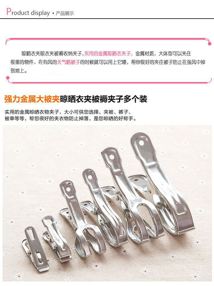 晒被防风夹子不锈钢晾衣夹家用大夹子衣夹衣服夹固定棉被夹批发