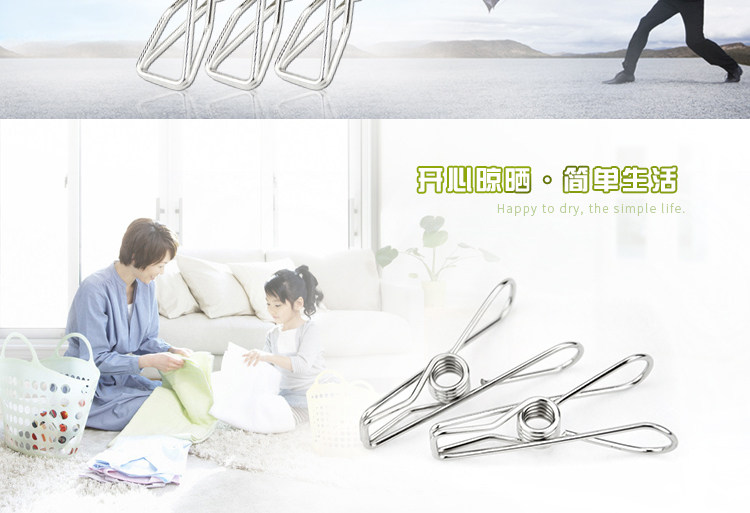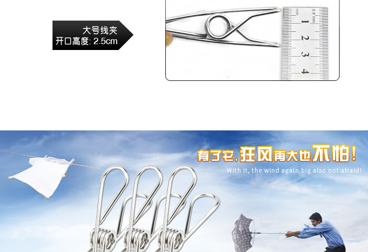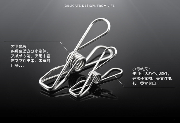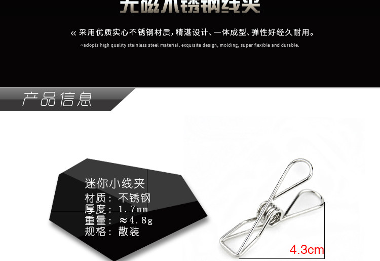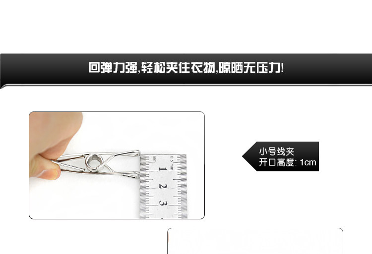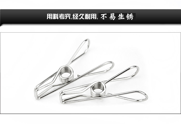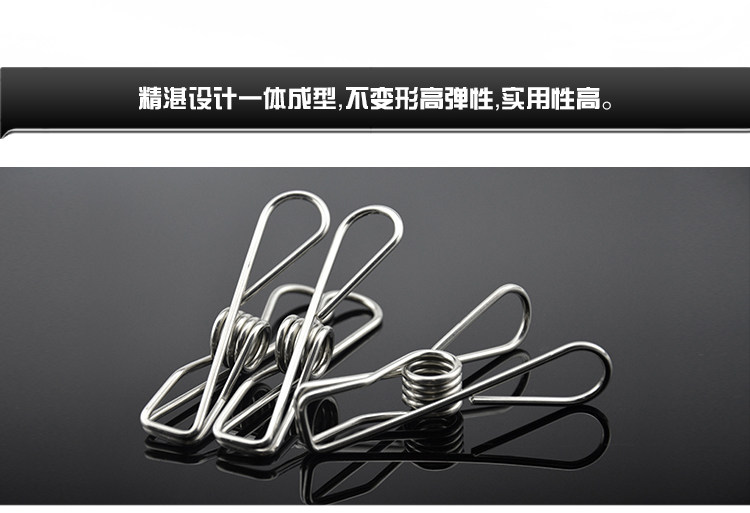 无磁不锈钢夹子线夹弹簧夹20个装晾衣夹子 4.5衣夹文档夹防风晾晒
