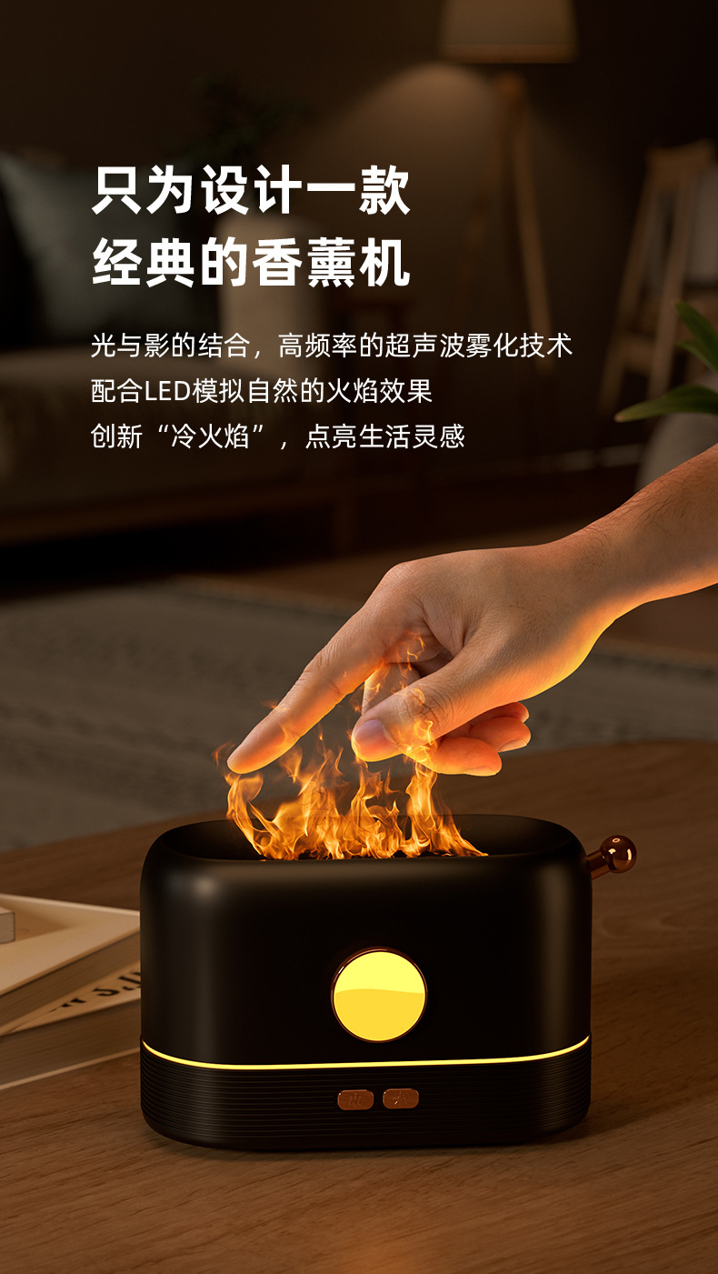 跨境仿真火焰香薰机家用办公室桌面usb3D火焰加湿器