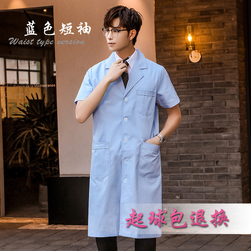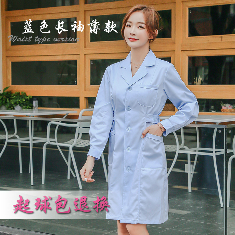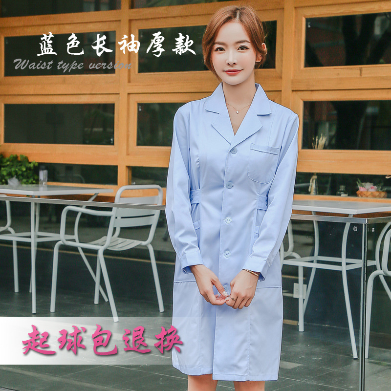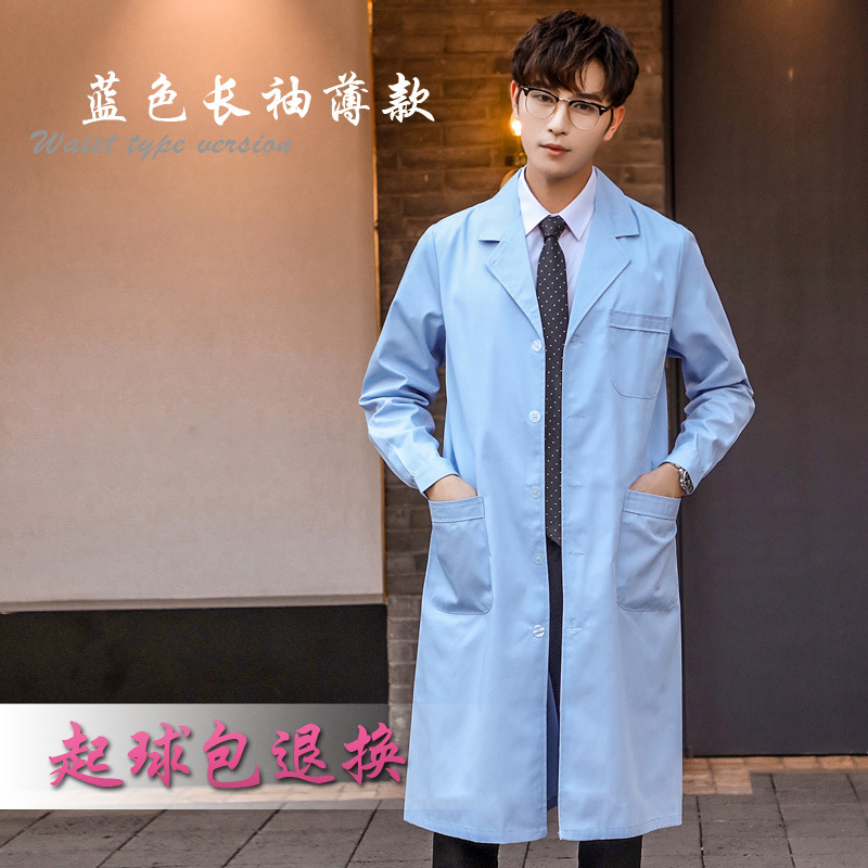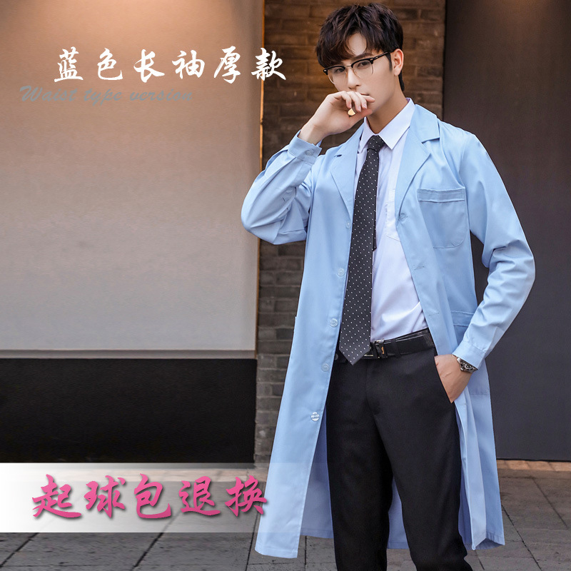 蓝色白大褂长袖医生服男口腔牙医医师服实验室护士加厚工作服长款