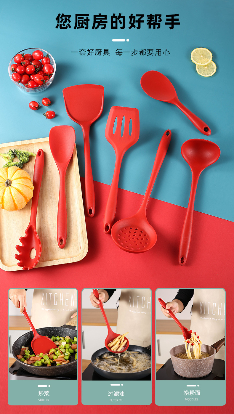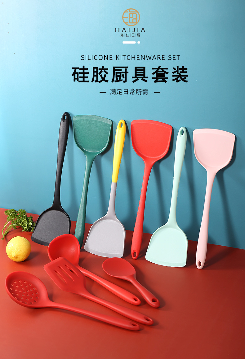 厂家直销全包硅胶铲 耐温不粘锅炒菜硅胶锅铲 厨房硅胶厨具带彩盒