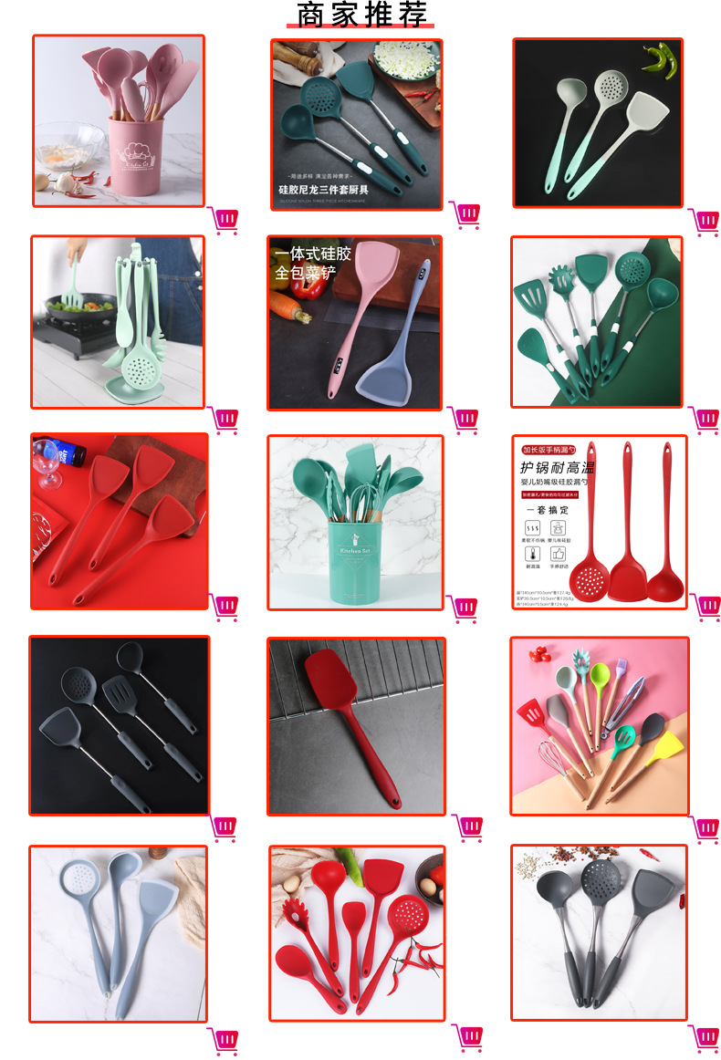 厂家现货硅胶铲子 双色拼接硅胶勺铲套件 不粘锅铲厨房工具