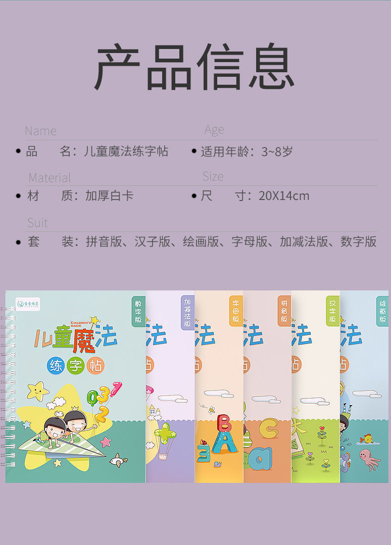 练字帖 儿童帖数字描红本幼儿园魔法写字学前大班初学者全套贴