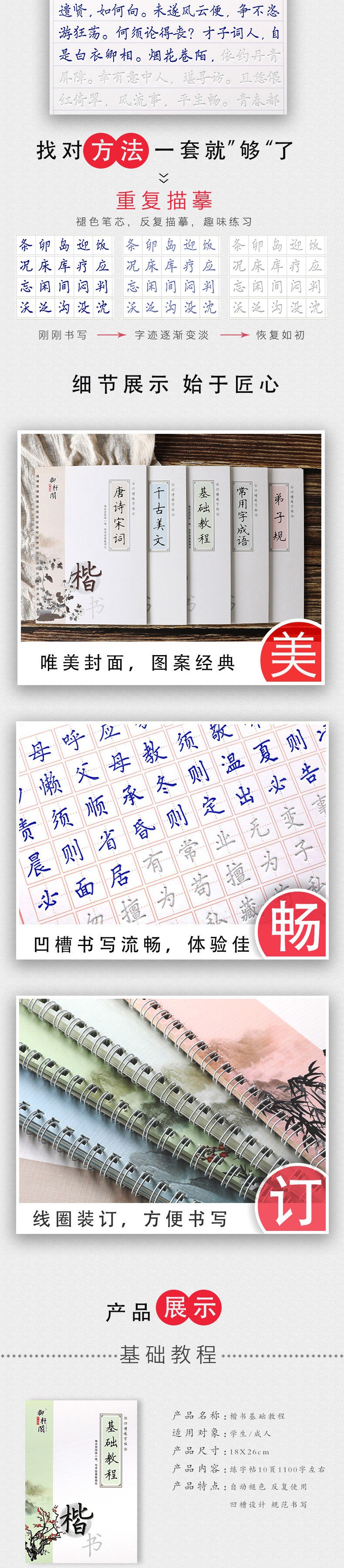字帖正楷成人凹槽练字帖楷书初中高中楷体速成练字本大学生练字贴