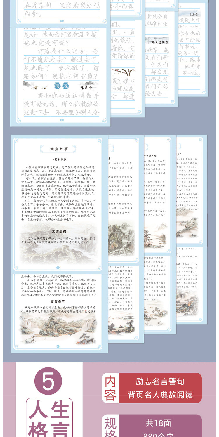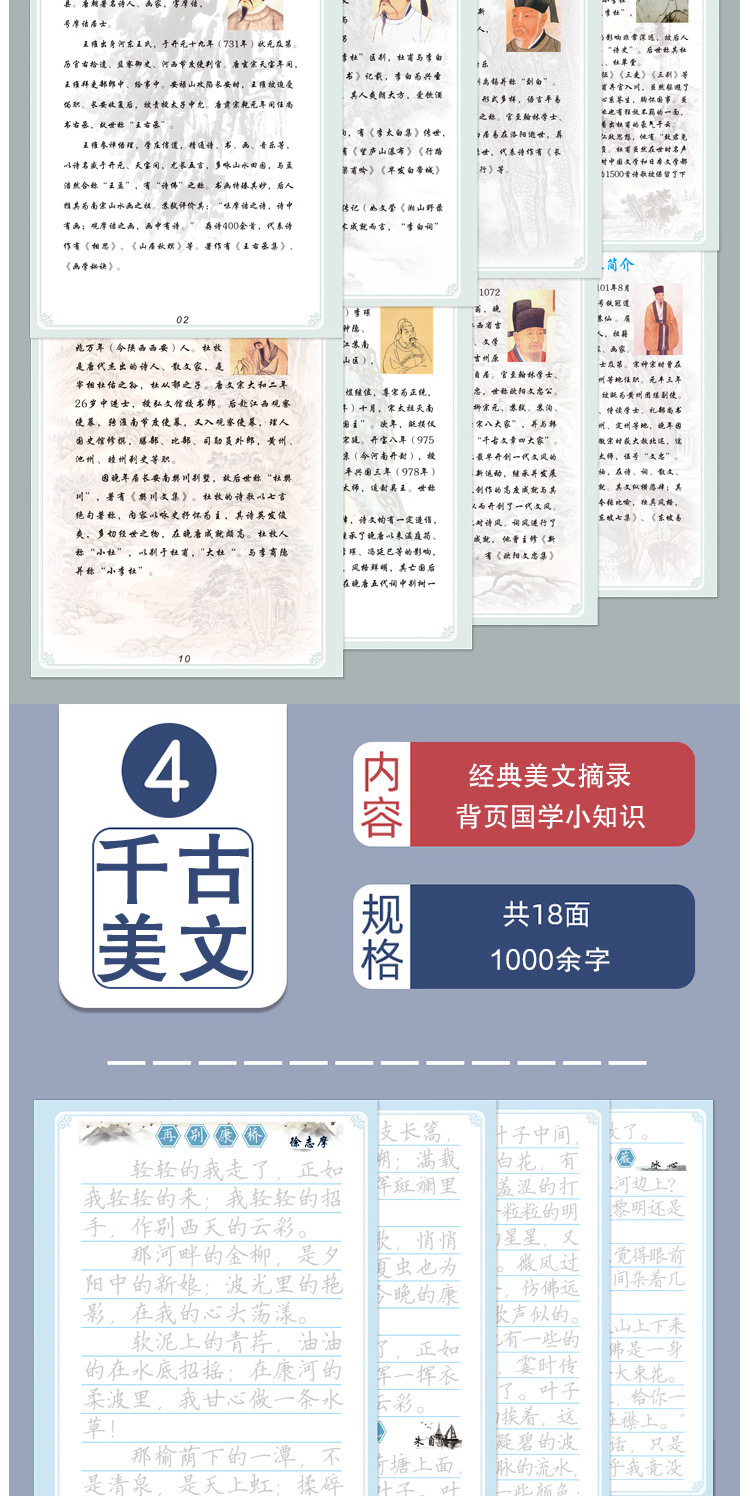 | free 5 refills, 1 pen case, 1 pencil grip: basic tutorial + ancient american text + tang poems/song phrases [high school]](赠5支笔芯1个笔壳1个握笔器:基础教程+千古美文+唐诗宋词【高中】) | USD $2.63 | 1000 piece available |