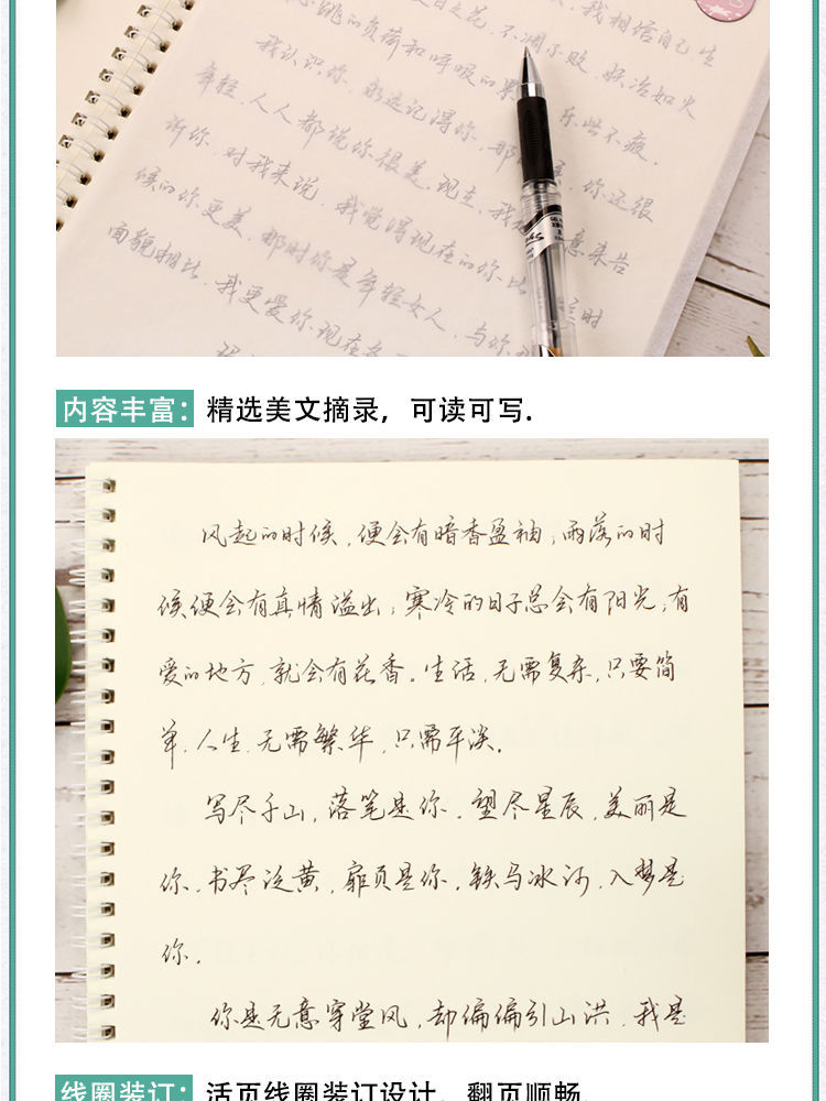 手写体行书行楷字帖男女生小清新字体成人硬笔临摹大学生练字贴