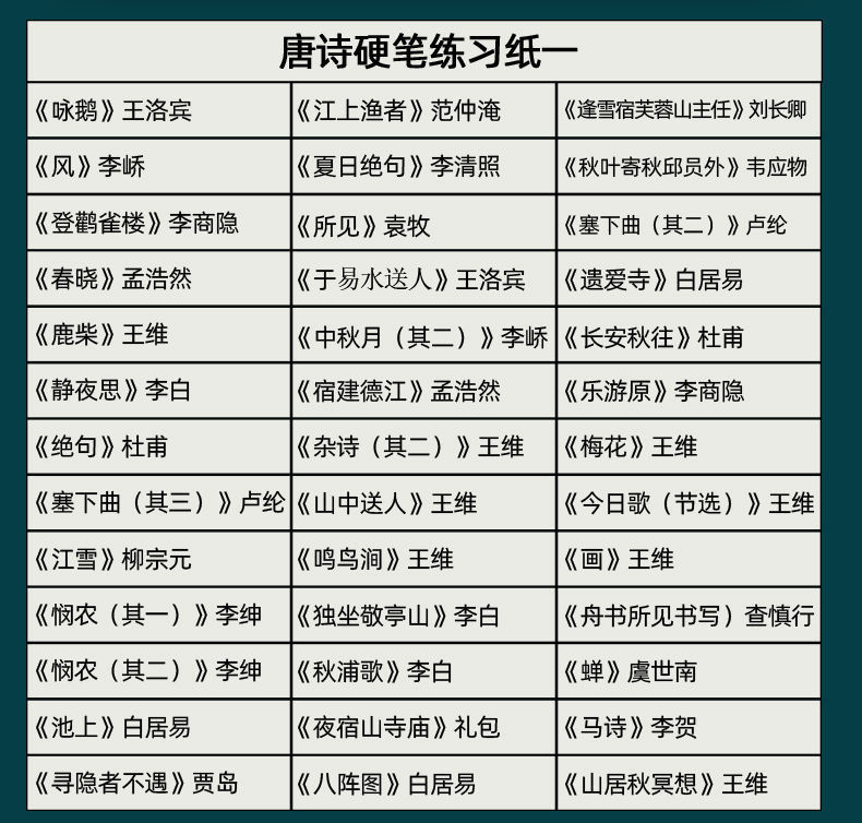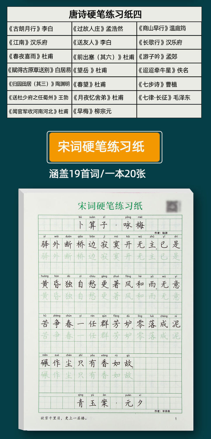 练字帖楷书唐诗宋词小学生中学生硬笔临摹训练纸成人速成练字本