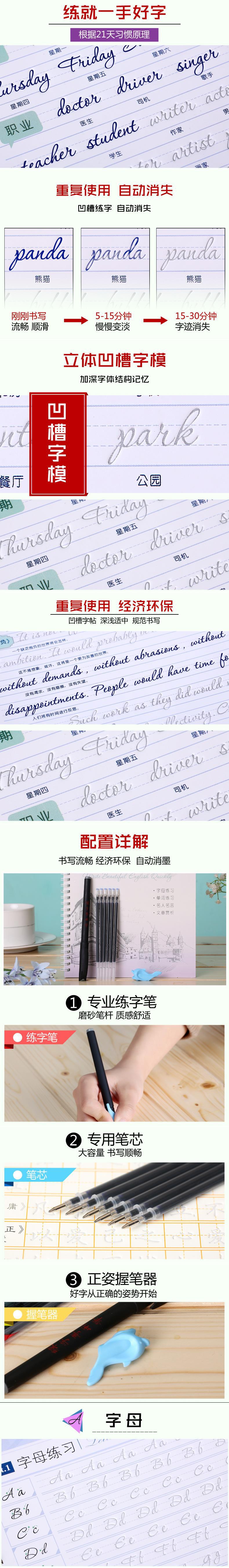 圆体英文练字帖凹槽练字板成人学生花体英语练字本贴