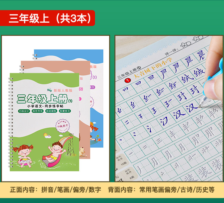 | third grade first volume full set (groove + tracing)(三年级上册全套(凹槽+描红)) | USD $9.54 | 219 piece available |